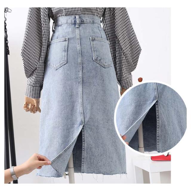 デニムスカート ハイウエスト デニム スカート Aライン 膝丈スカート デニムロングスカート ロングデニムスカート ミドル丈 トレロ 可愛い スリット