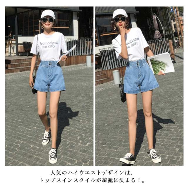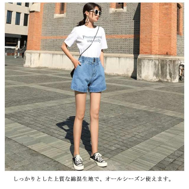 デニムショートパンツ ハイウエスト ハイウエストデニムパンツ ショート丈 デニム ショートパンツ デニム ワイドパンツ ジーンズ ボトムス 美脚 夏 ゆったり 大きいサイズ