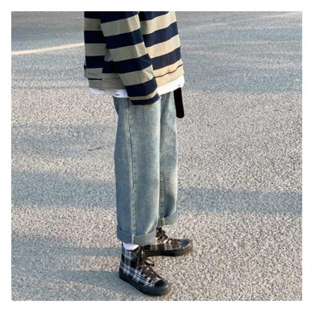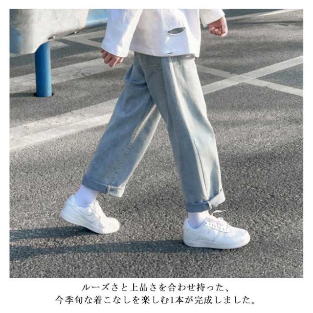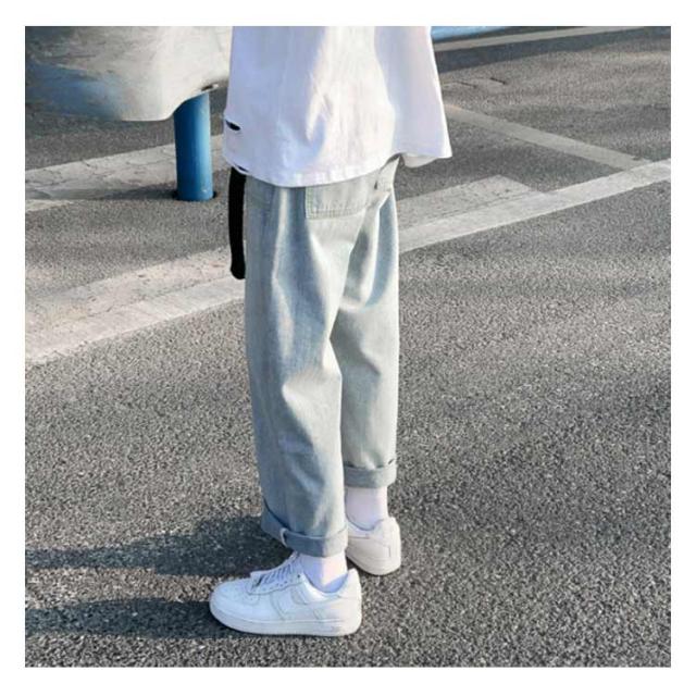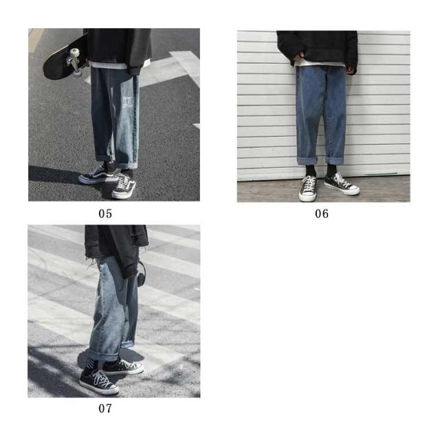 ワイドパンツ メンズ カジュアルデニムパンツ ロールアップ 9分丈 デニムパンツ カジュアルパンツ ジーンズ デニム ボトムス ワイドシルエット ストレート 通学 春夏 メンズファッション