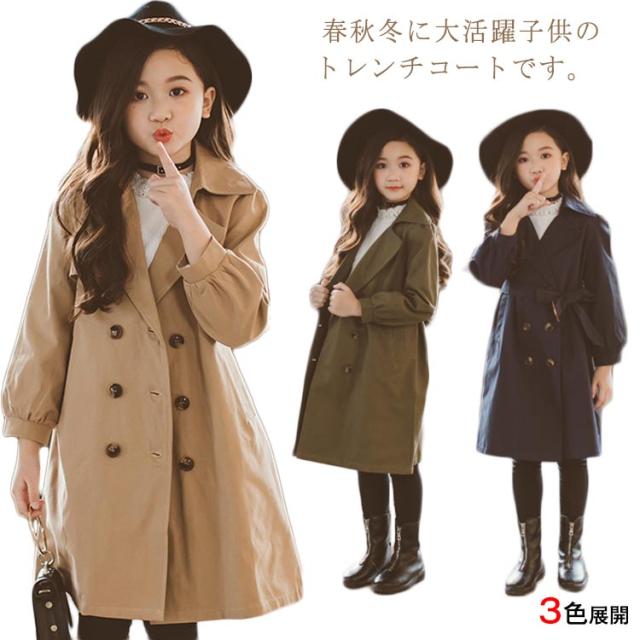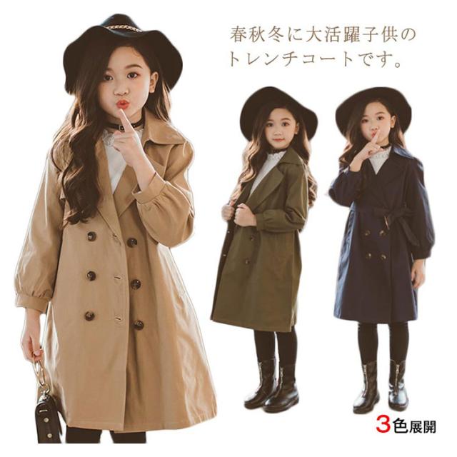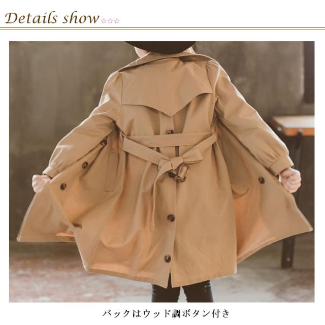 子供コート スプリングコート キッズコート トレンチコート キッズ服 女の子服 ジャケット ロング 無地 可愛い おしゃれ カジュアル お出かけ 普段着 入学式 卒業式 通園 通学 新作