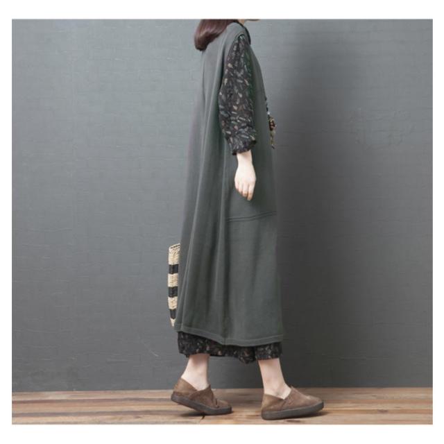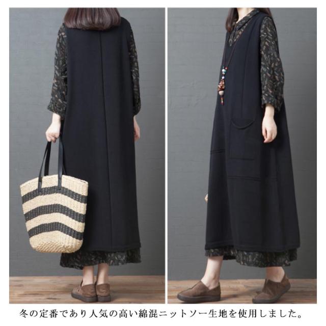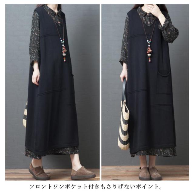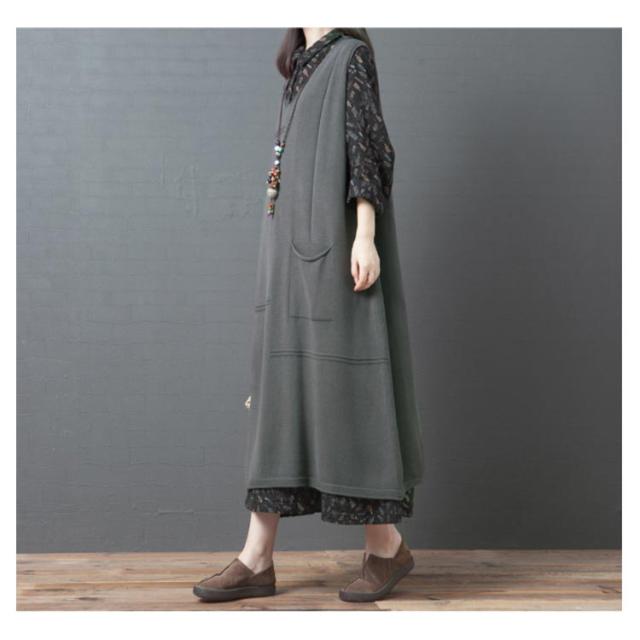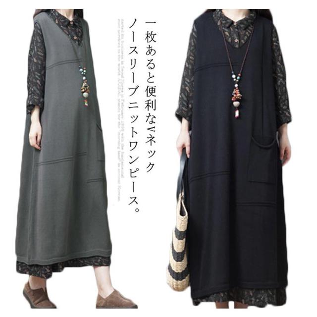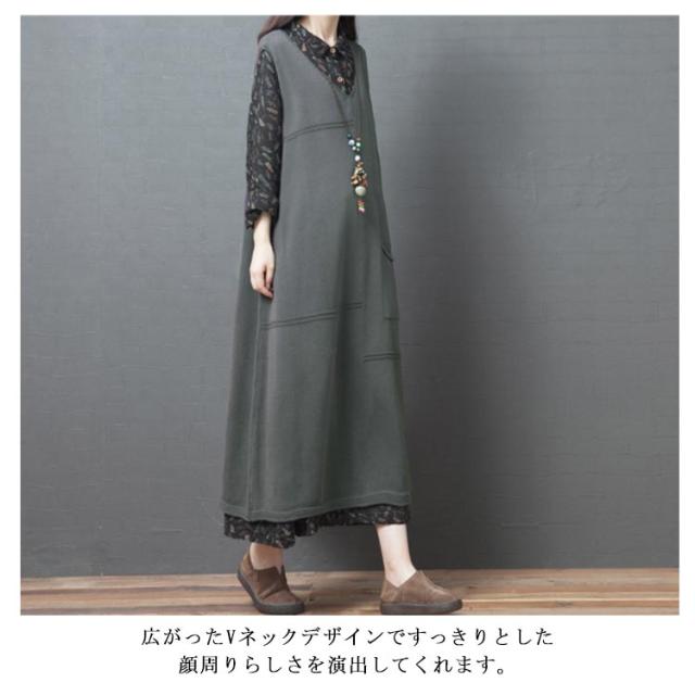 ノースリーブニットワンピース ニットワンピース ロングワンピース ノースリーブ 袖なし ワンピース Vネック カジュアルワンピース aライン ゆったり 体型カバー シンプル 無地 体型カバー