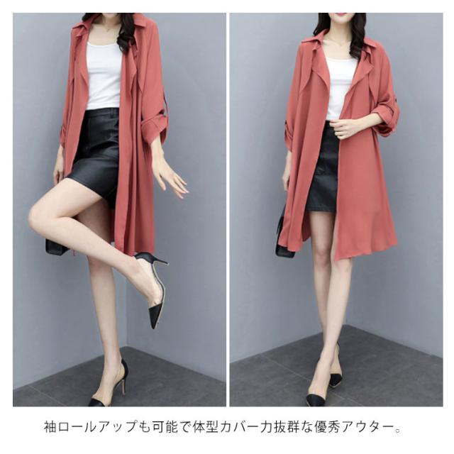 大きサイズ ロングカーディガン ロングコート サマーカーディガン ロング丈 トレンチコート 薄手 春 夏 秋 袖ロールアップ可 ゆったり 体型カバー おしゃれ 女性 20代 30代 40代