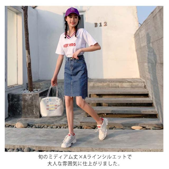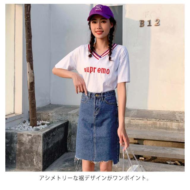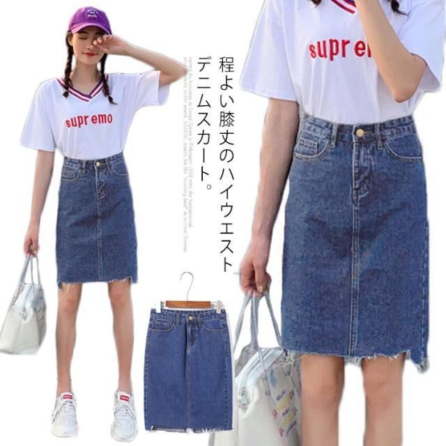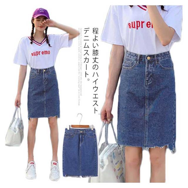 デニムスカート スカート アシメトリー ミドル丈 カジュアルスカート スカート ハイウエスト バックスリット aライン 美脚 学生 通勤 春 夏 秋