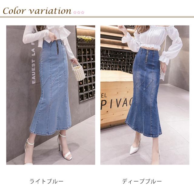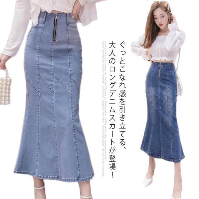 ハイウエストデニムスカート マーメイドシルエット デニムスカート デニム タイトスカート ロングスカート ロングデニムスカート デニムロングスカート タイト ロング丈 スカート 色落ち加工
