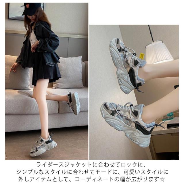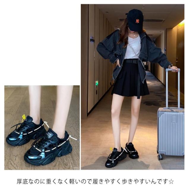 ストリート系 厚底スニーカー 厚底 スニーカー レディース メンズ レースアップ スニーカー 厚底靴 美脚 スニーカー 歩きやすい ウォーキングシューズ 原宿系 レースアップ 厚底 シューズ 靴