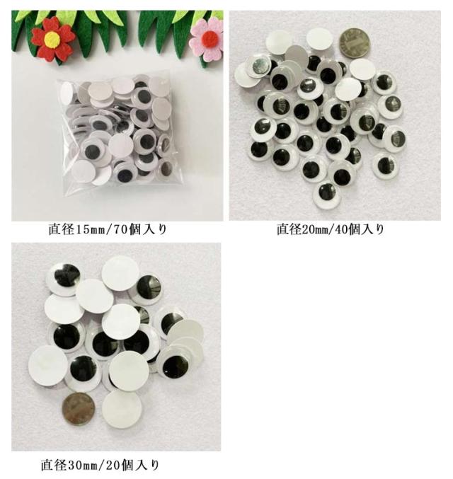| プラスするだけで手作り人形が生き生きと可愛い♪ キョロキョロと動く人形目玉! いろんな色やサイズと十分な量があるので、お子様と一緒に手作りするのが楽しい。 粘着タイプなので、手作り作品に貼り付けるだけ! | |