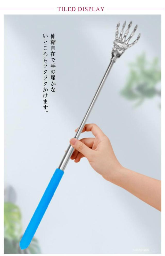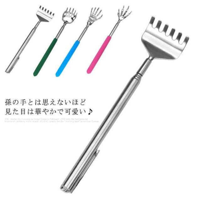 | 孫の手とは思えないほど見た目は華やかで可愛い♪ 伸縮自在で手の届かないところもラクラクかけます。 熊の手、骸骨の手、鳥の手などユニークなデザインと微妙な指がかけ心地がとても快適◎ 丈夫なステンレス製で長持ちできるのも嬉しいポイント。 最長60cmの超ロングタイプの孫の手、従来品より使いやすさバツグン。更に、伸縮できるので、携帯しやすいコンパクトサイズもワンポイント。 | |