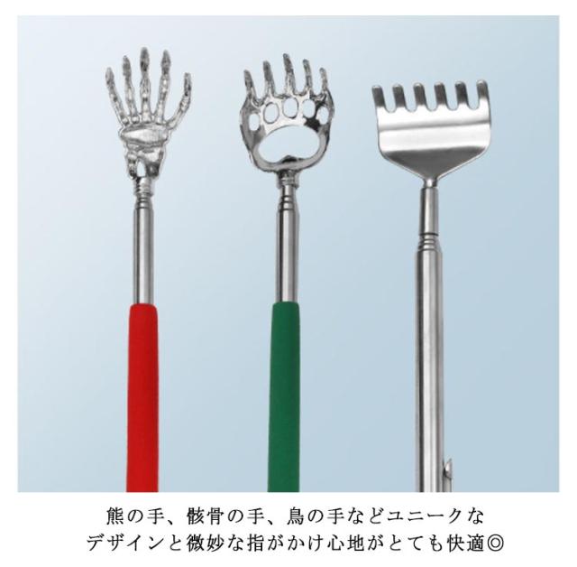 送料無料 選べる4タイプ のびる 孫の手 伸縮式 超ロング ステンレス 伸縮自在 熊の手 骸骨 鳥 ペン型 持ち運び便利 背中 かゆいところに手が届く 足裏 マッサージ