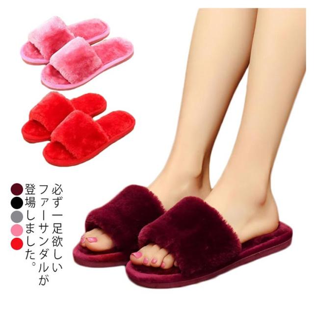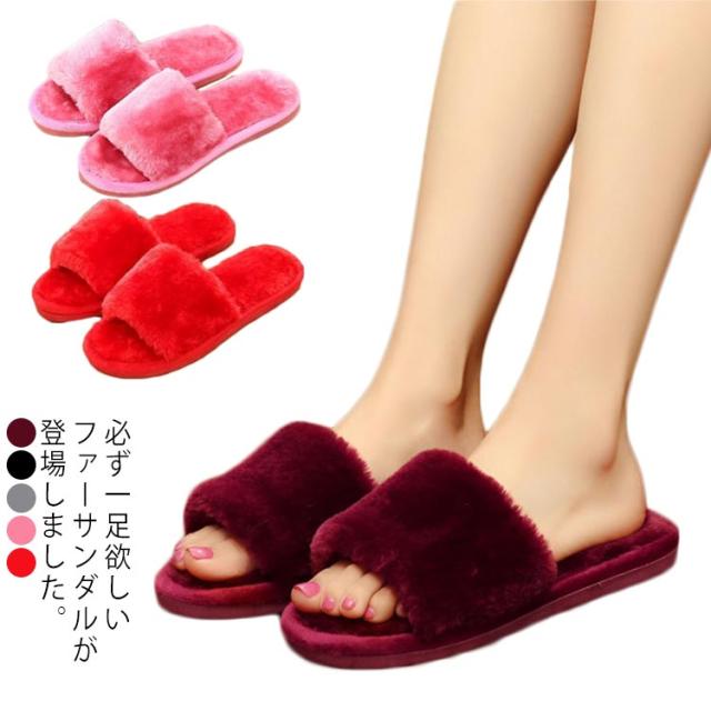 送料無料 ペアルック ルームシューズ サンダル ファーサンダル レディース メンズ ファーシューズ ふわふわ もこもこ シュール 滑りにくい 軽量 軽い 室内用 おしゃれ 可愛い 秋冬
