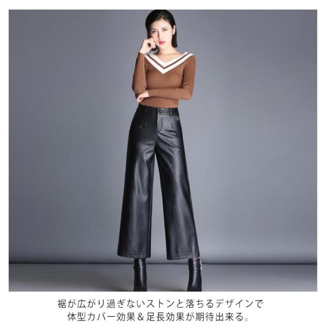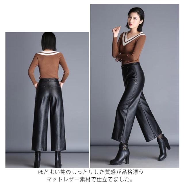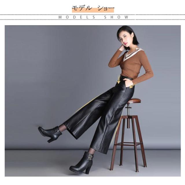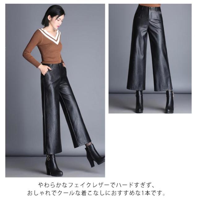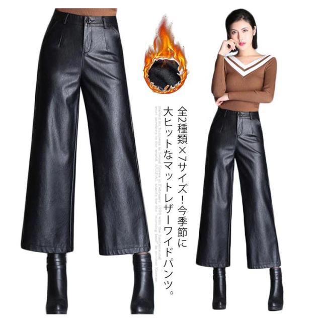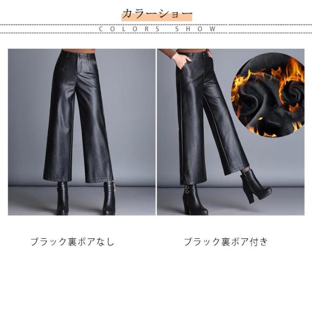 全2種類×7サイズ!レザーワイドパンツ ワイドパンツ 秋冬 ロングパンツ レザーパンツ ワイド ガウチョパンツ レザー フェイクレザー PU 裏起毛 暖かい ボトムス 体型カバー 通勤 カジュアル キレイめ