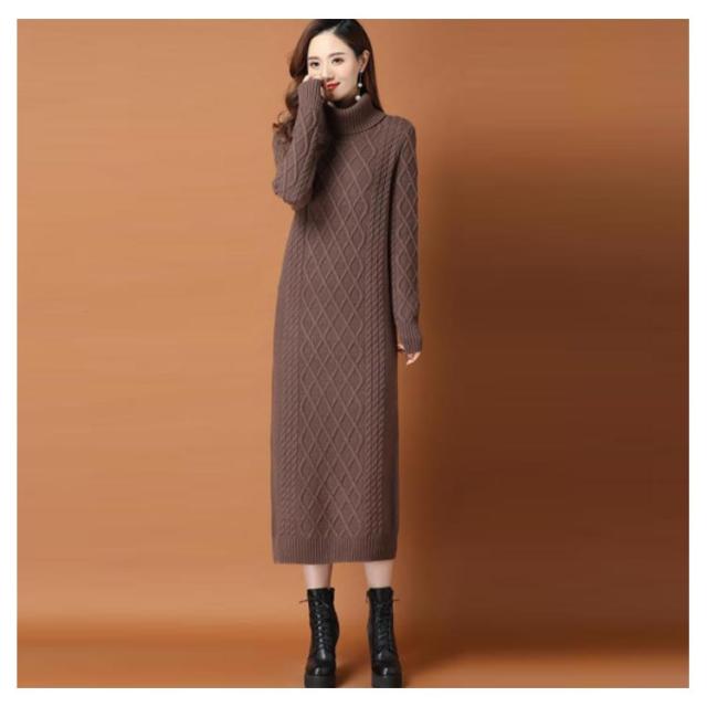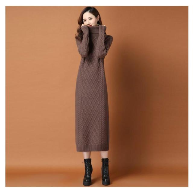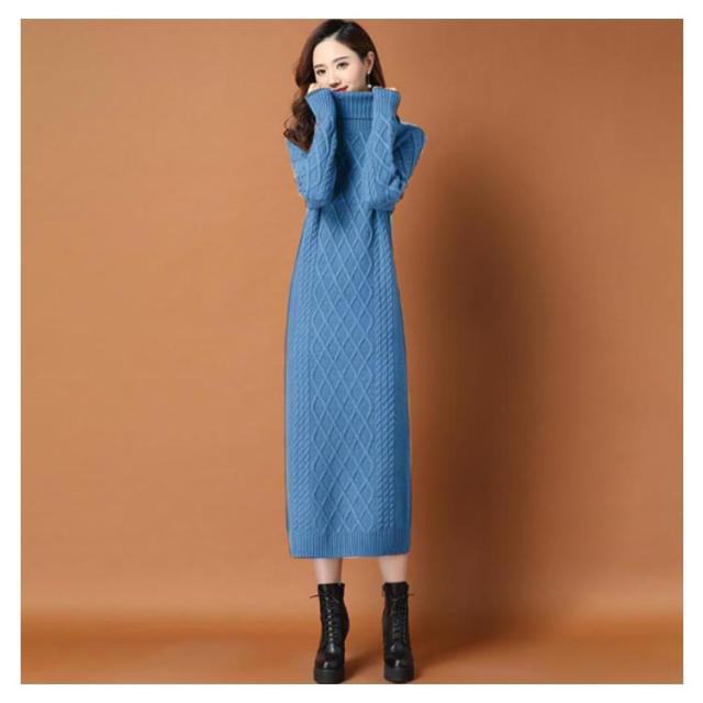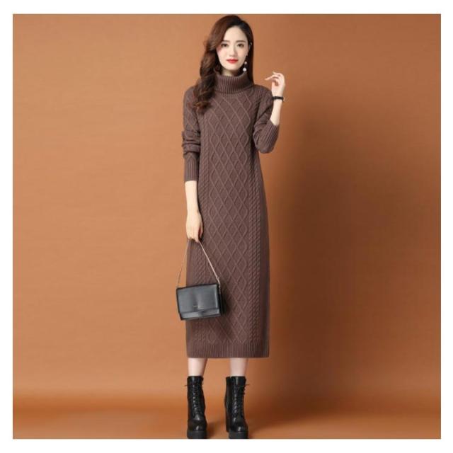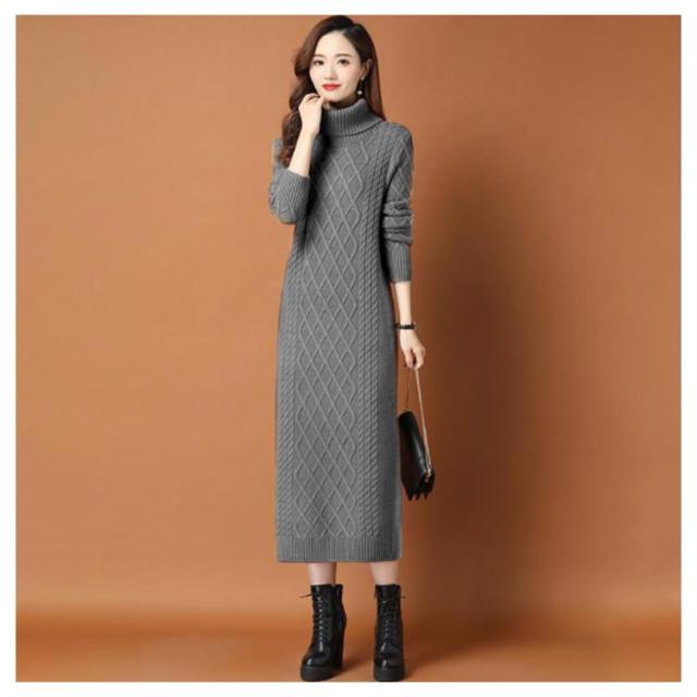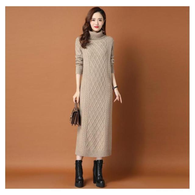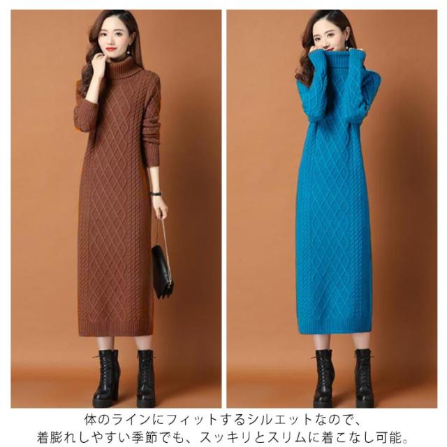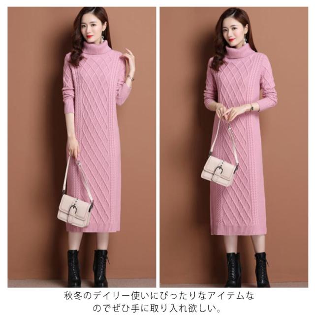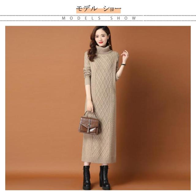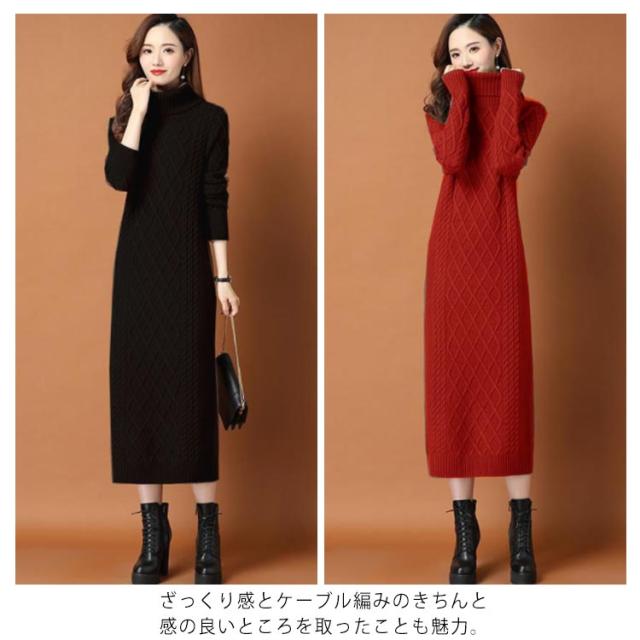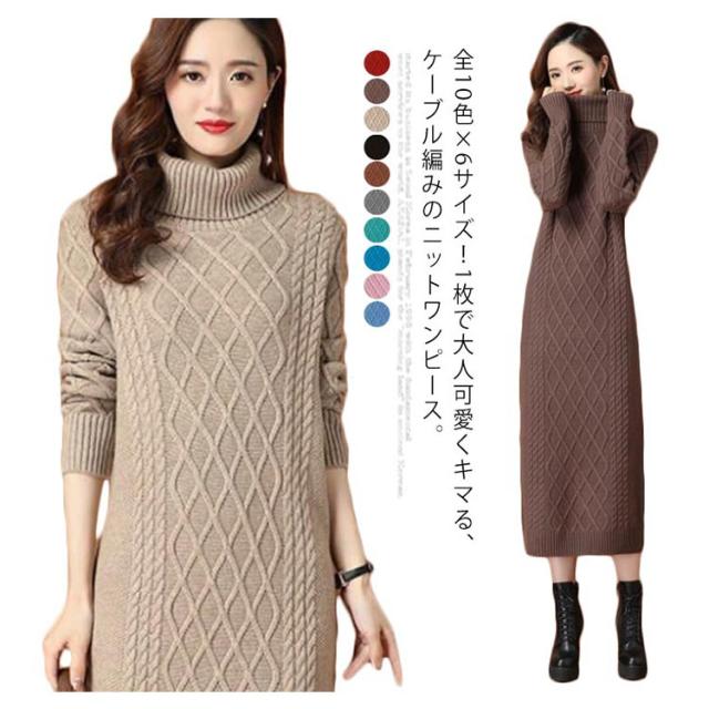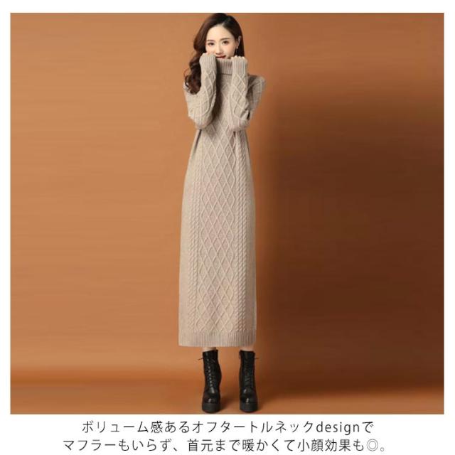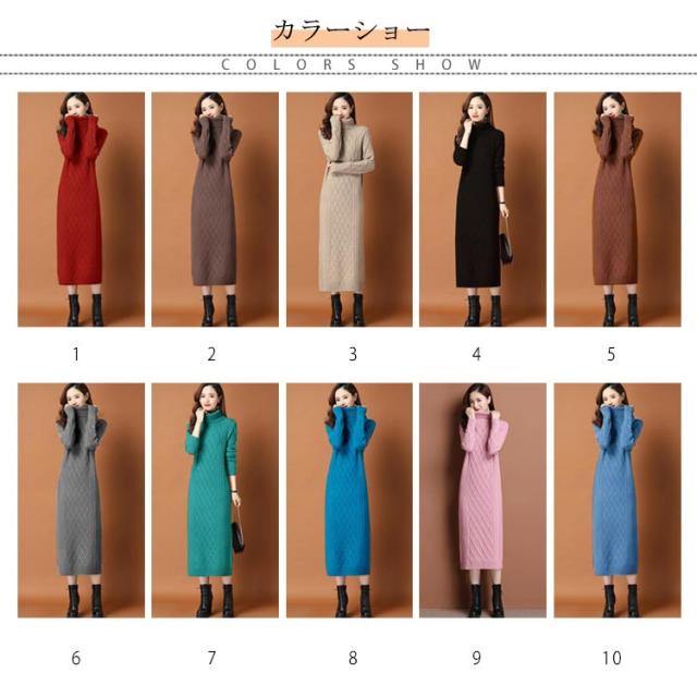 全10色×6サイズ!ニットワンピース ニットワンピ タートルネック ワンピース ニット ケーブル編み オフタートル 秋 秋冬 大きサイズ 膝下丈 防寒 無地 おしゃれ 女性