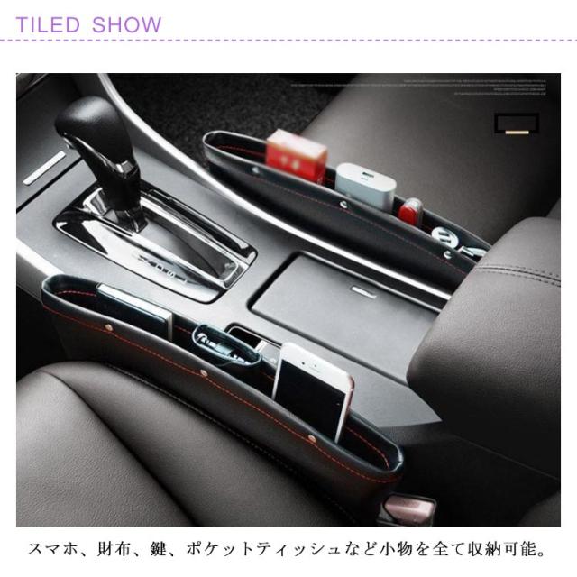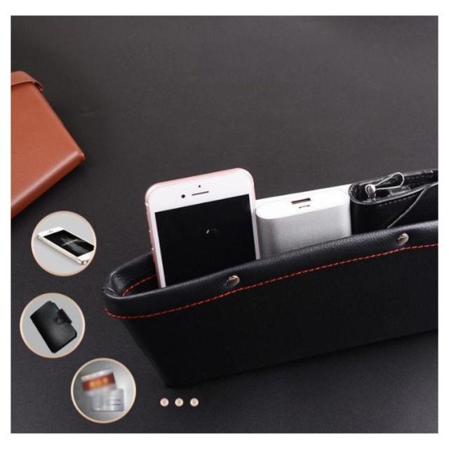 | 車内スペースを有効に使って簡単にスキマ収納が可能。 スマホ、財布、鍵、ポケットティッシュなど小物を全て収納可能。 コンソールボックスとシート間に挟むだけで取り付けは完了。 小物をいれて、運転中の急ブレーキでも、座席の隙間落下防止! コンパクトなサイズですが、十分な収納能力があります! | |