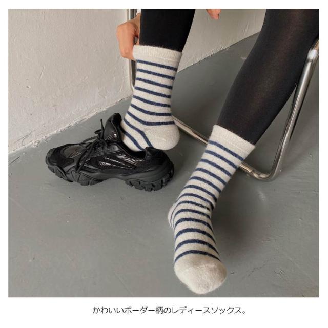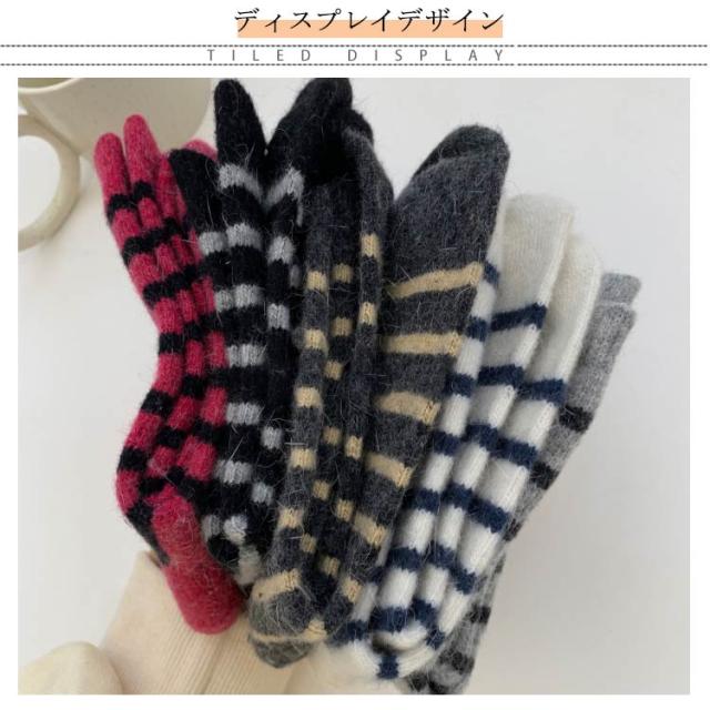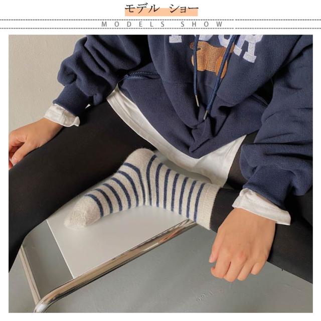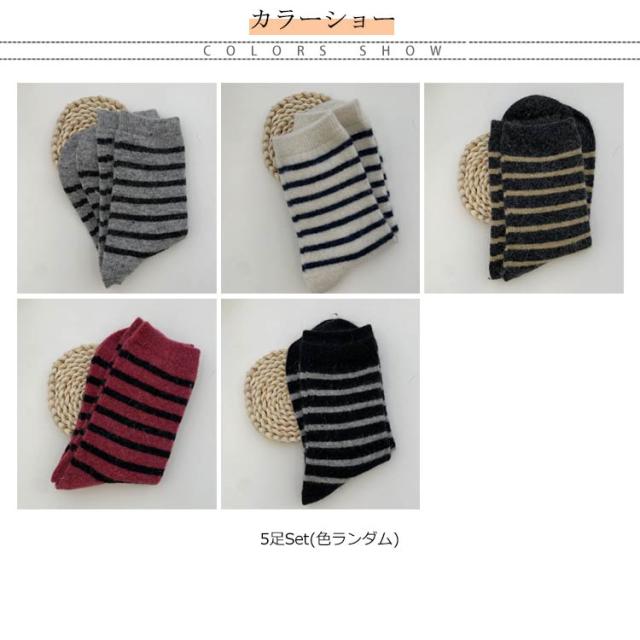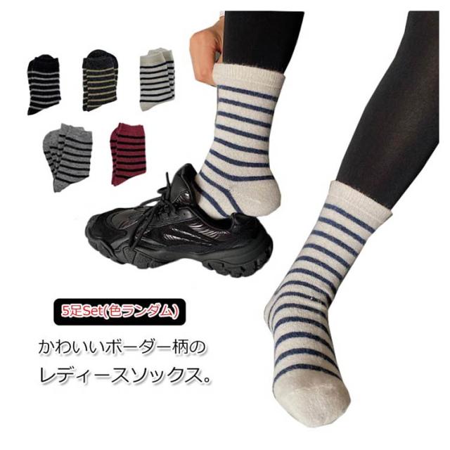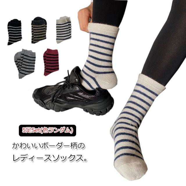 送料無料 靴下 ソックス 5足セット レディース ソックス くつ下 ボーダー 柄 学生 大人 厚手 暖かい あったか 可愛い 秋 冬 防寒 保温 秋 冬