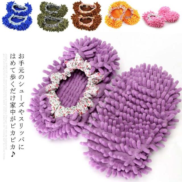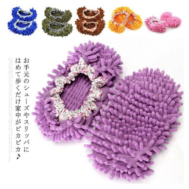 | お手元のシューズやスリッパにはめて歩くだけ家中がピカピカ♪ スリッパや靴にさっとはめて歩くだけお掃除しちゃう♪ シューズだけでなく、モップにもはめられる。 マイクロファイバーなので、水滴、髪の毛、ほこり、ちりなどをすばやくキャッチ! フローリングに優しい柔らい素材、床の音対策にも◎ どのシーズンのスリッパにも合わせれるのも魅力的です。 丸洗いできるから、いつも清潔に。 | |