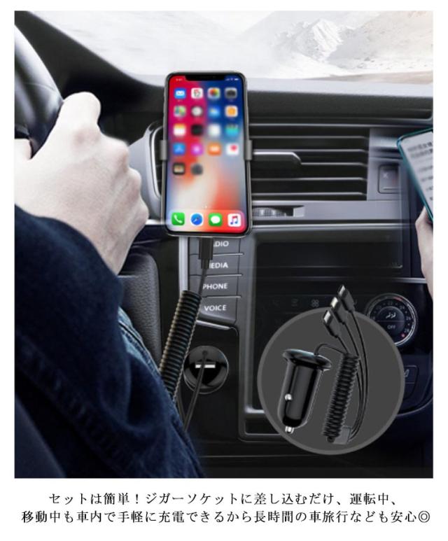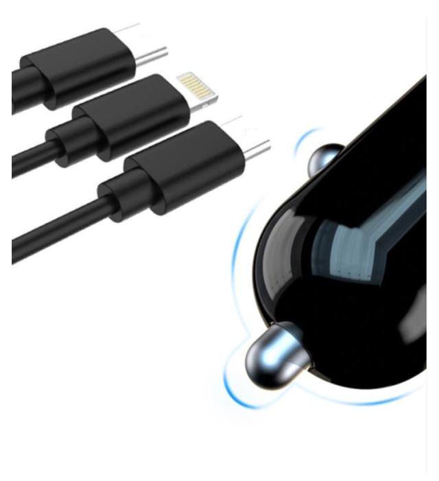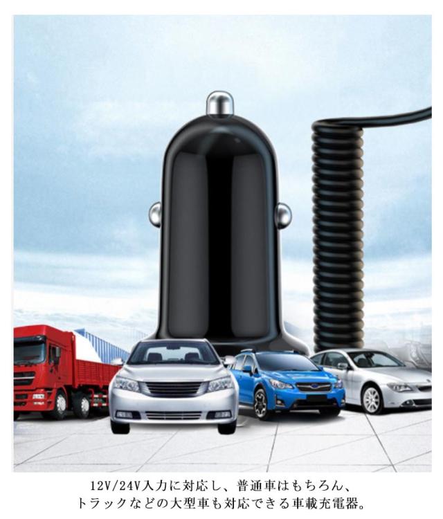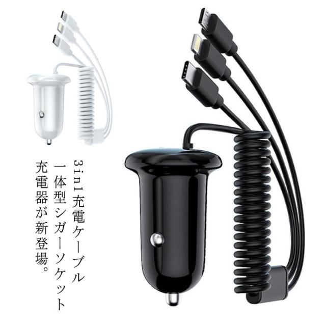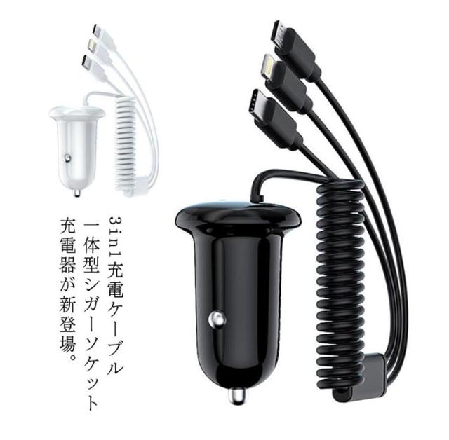| 3in1充電ケーブル一体型シガーソケット充電器が新登場。 USBポートも搭載で4台同時充電可能! 嬉しいケーブル付き!あちこちケーブルを探す手間を省き、総長150mあり、運転席はもちろん、後部座席もご利用できます。 12V/24V入力に対応し、普通車はもちろん、トラックなどの大型車も対応できる車載充電器。 過充電保護、過電流保護、過電圧保護、高温防止、短絡保護の安全設計、さらに難燃素材を採用し、安全・安心の多重保護デザイン♪ セットは簡単!ジガーソケットに差し込むだけ、運転中、移動中も車内で手軽に充電できるから長時間の車旅行なども安心◎ | |