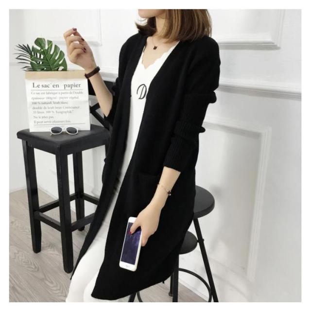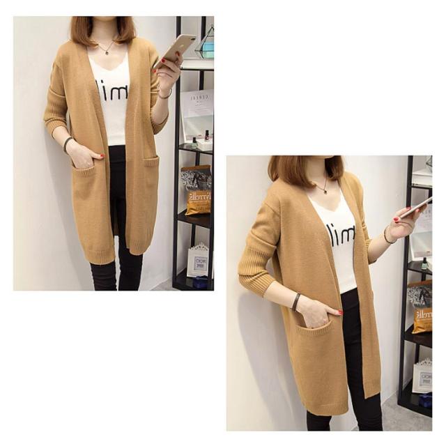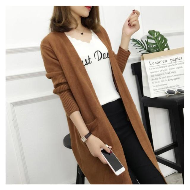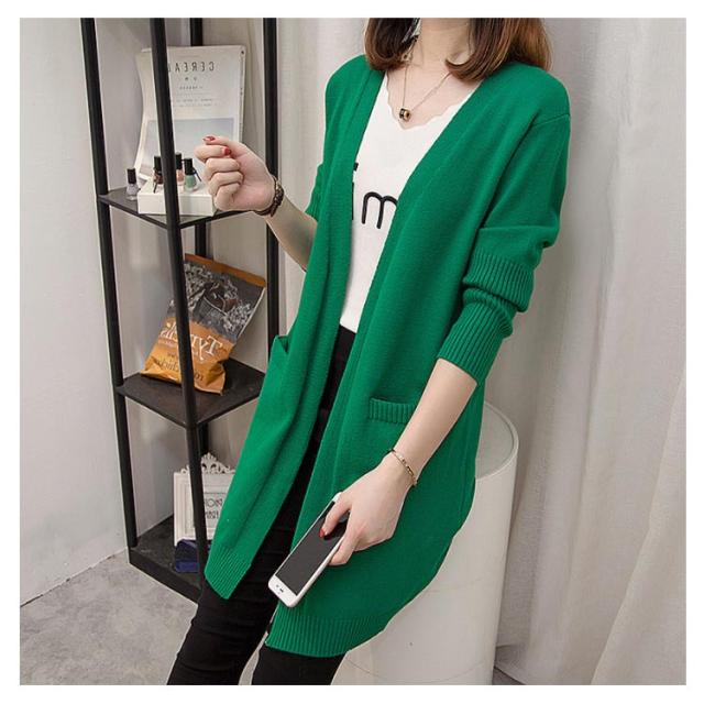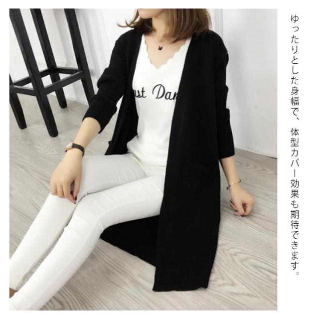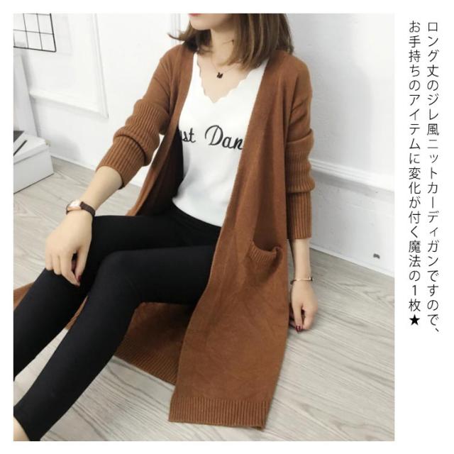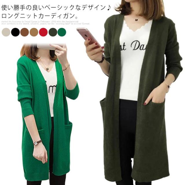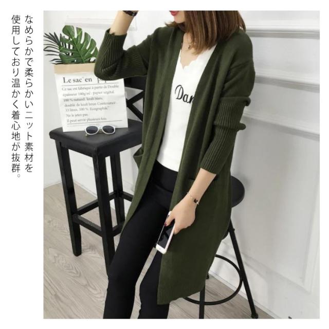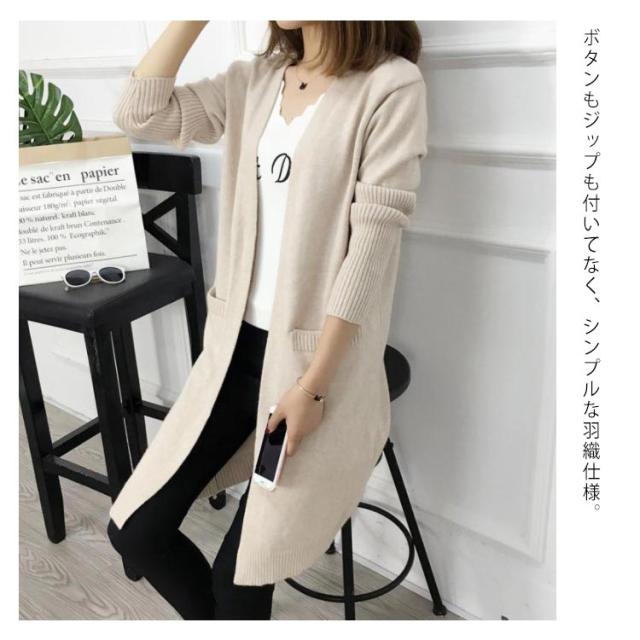 ニットカーディガン レディース ロングカーディガン 長袖カーディガン コーディガン 羽織り物 トップス 無地 Vネック ロング丈 シンプル ポケット付き カジュアル ルーズ ゆったり 体型カバー 春 秋 冬