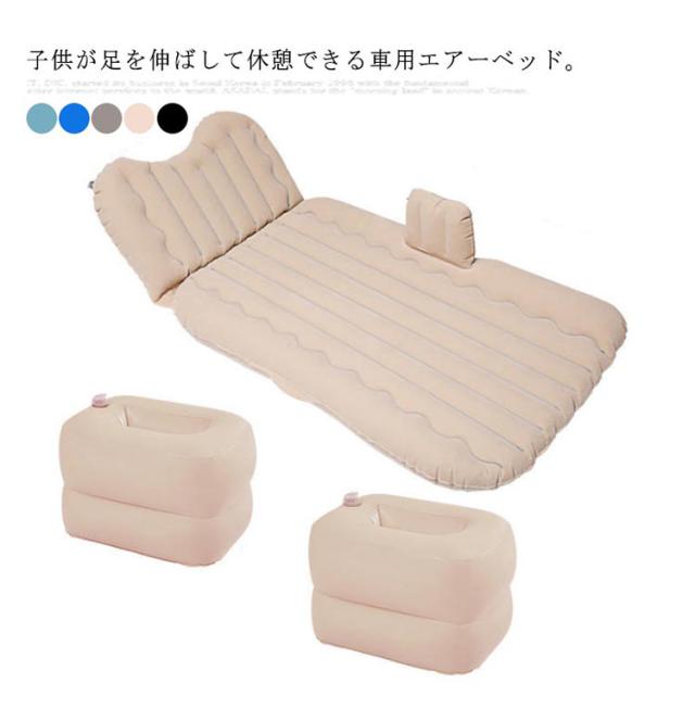 | 子供が足を伸ばして休憩できる車用エアーベッド。 車旅行や帰省など車での長距離移動時、車中泊用として最適なエアーマット。 子供だけでなく、大人も余裕にお使いいただけます。 後部座席に置いて、膨らませるだけで広々とした快適な車内空間◎ 履物などが入れるのに便利な足元クッション付きで、足元が沈まることなく、とても快適な寝心地が叶える。 サイドクッション付きで、お子様の落下防止にも◎ 車用だけでなく、キャンプや野外レジャーにも役立つエアーマット。 | |