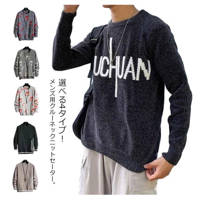 ニットセーター メンズ セーター ニット クルーネック トップス トレーナー アウター 厚手 秋 冬 暖かい おしゃれ カジュアル 大きいサイズ