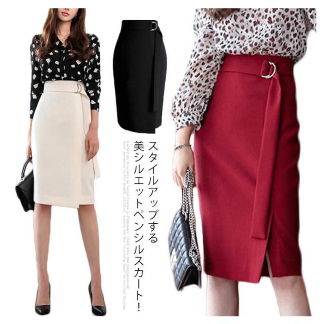 XS-3XLサイズ!スリット ペンシルスカート タイトスカート 膝丈 フォーマルスカート 通勤 オフィス OL スカート タイト ペンシル ハイウエスト 美ライン 無地 大きサイズ 小さいサイズ