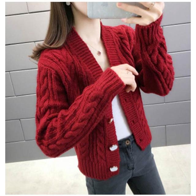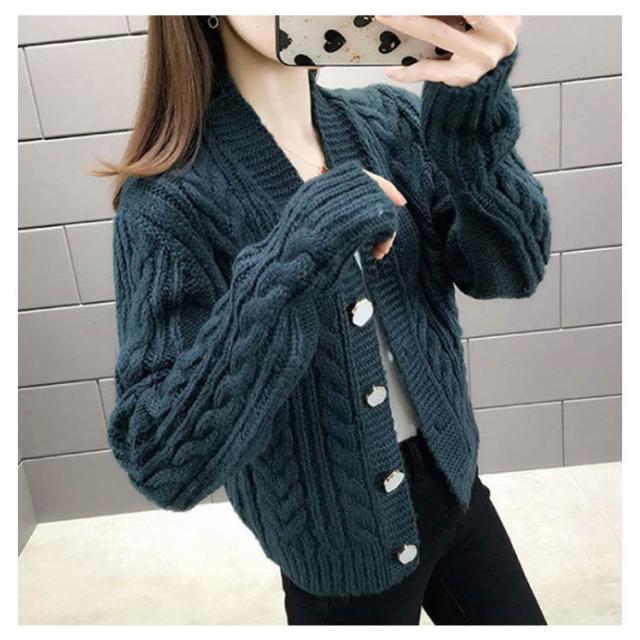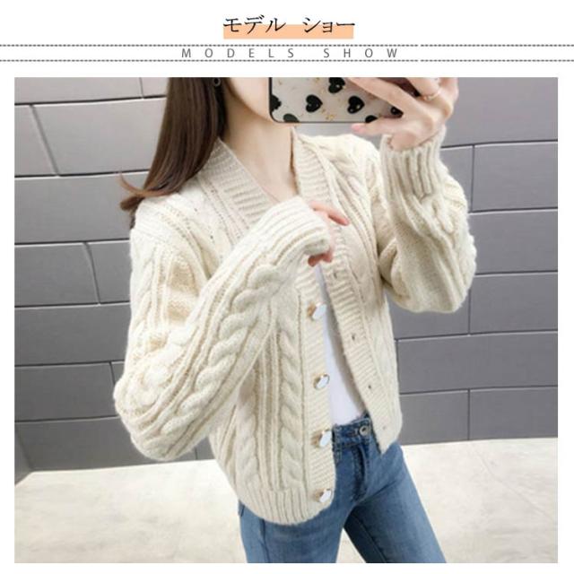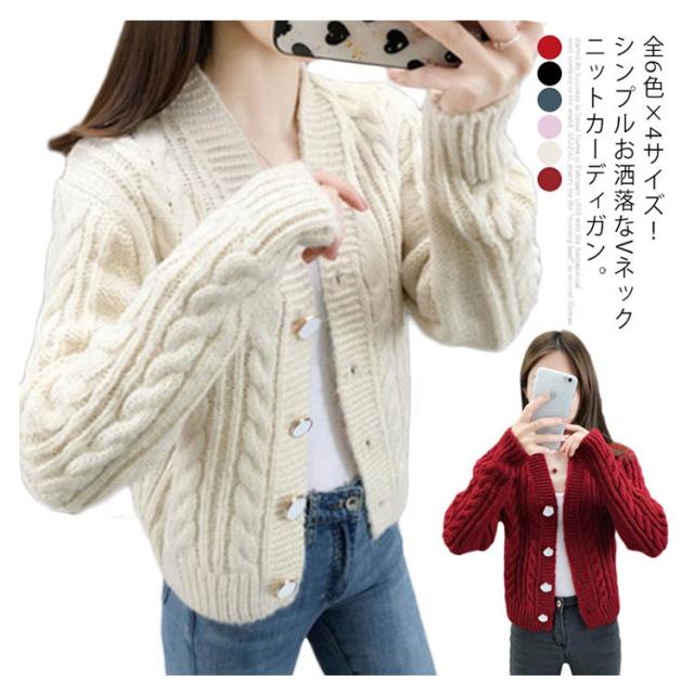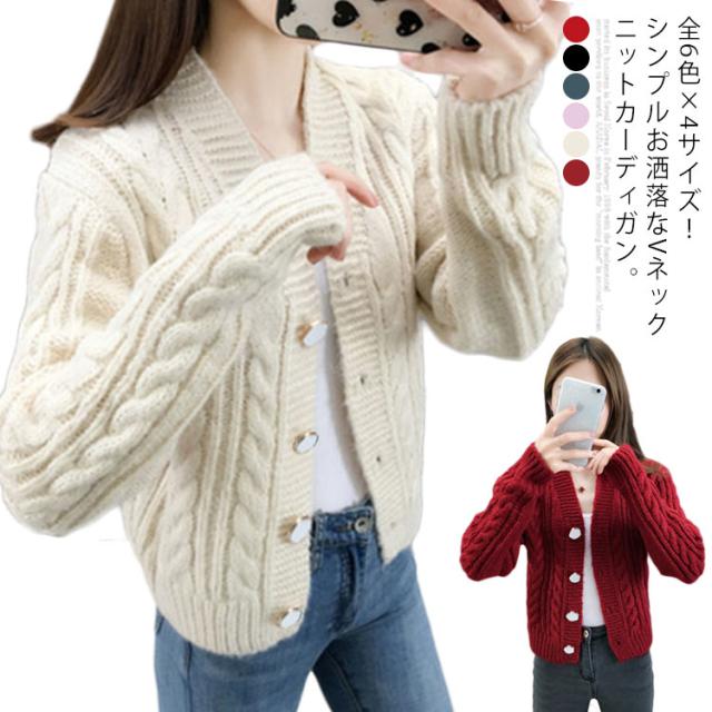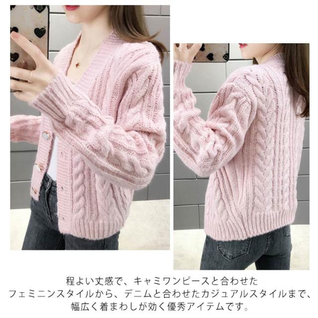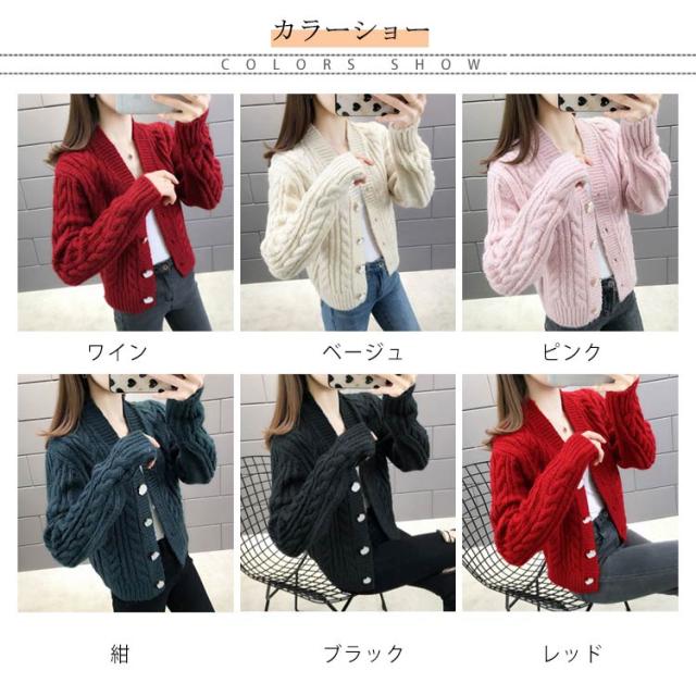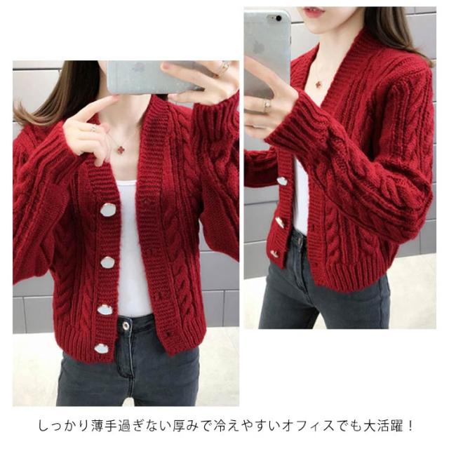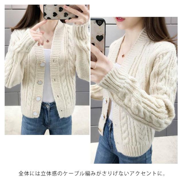 全6色×4サイズ!ケーブル編みカーディガン ニットカーディガン レディース ニット カーディガン ざっくりニット ケーブル編み ショート丈 ボタン シンプル お洒落