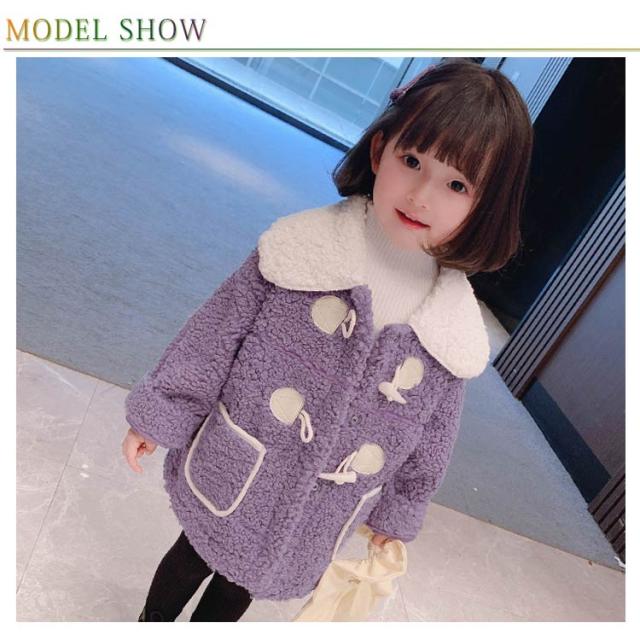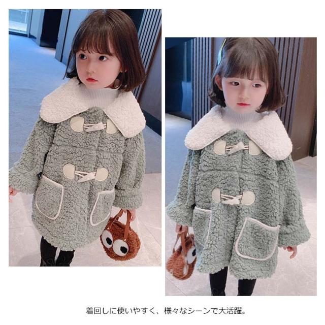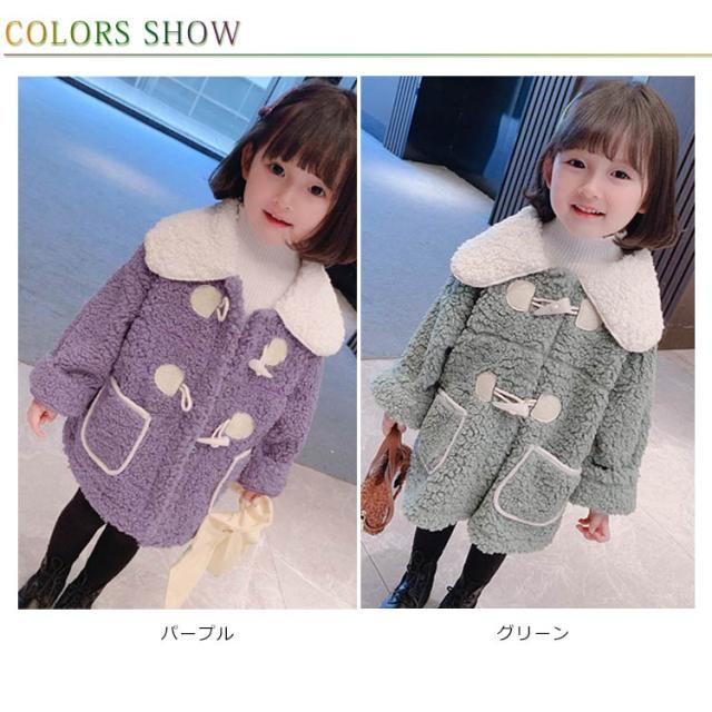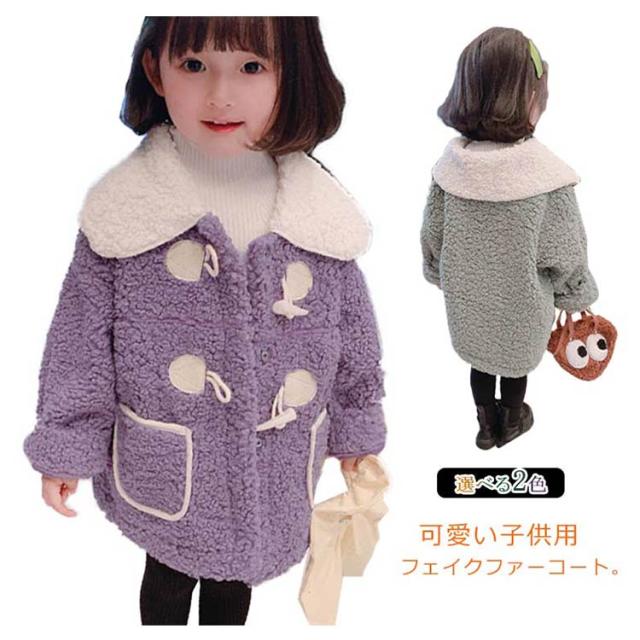 子供服 コート キッズ フェイクファーコート 女の子 アウター ジャケット ふわふわ フェイクファー 厚手 丸襟 暖かい トッグルボタン 無地 かわいい 可愛い 防風 防寒 春秋 冬 秋冬