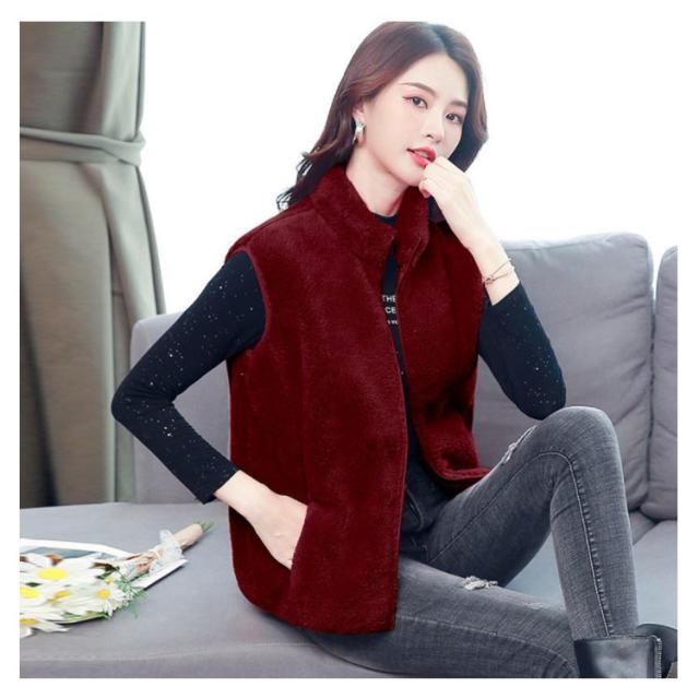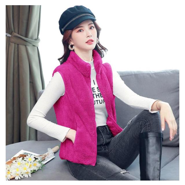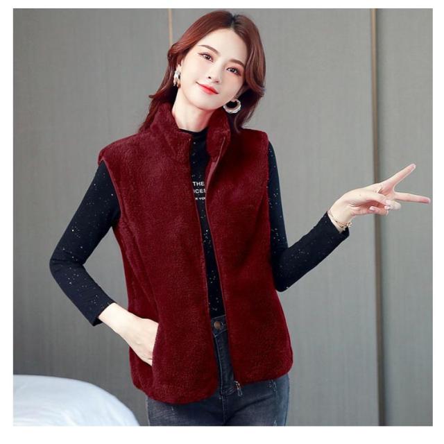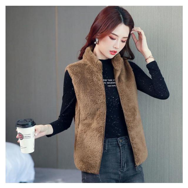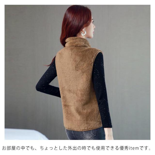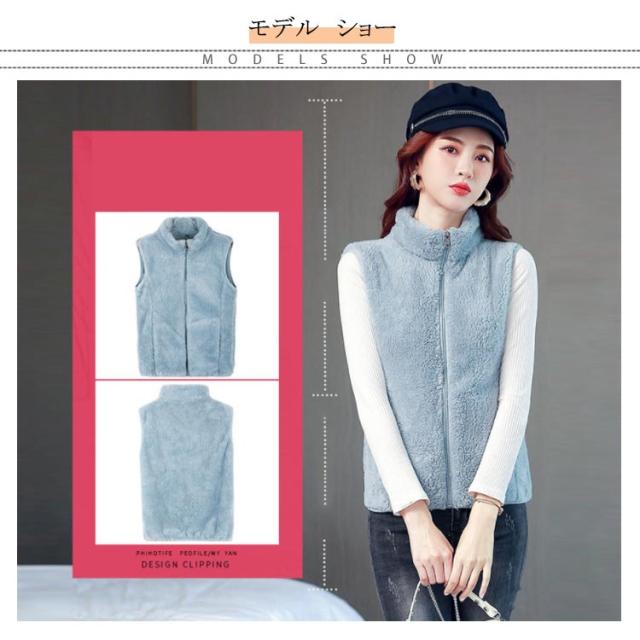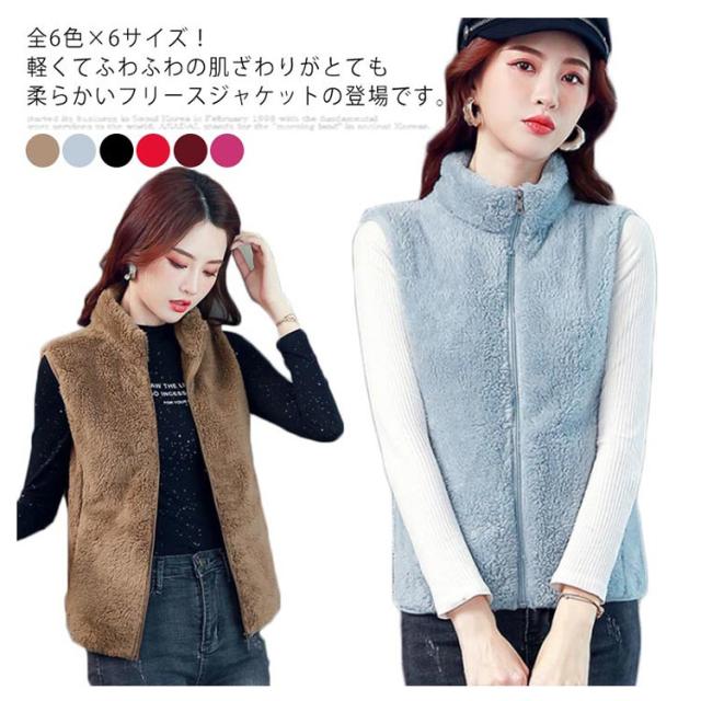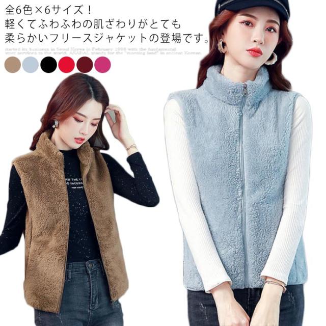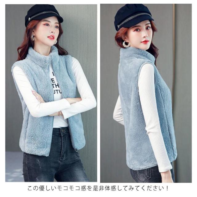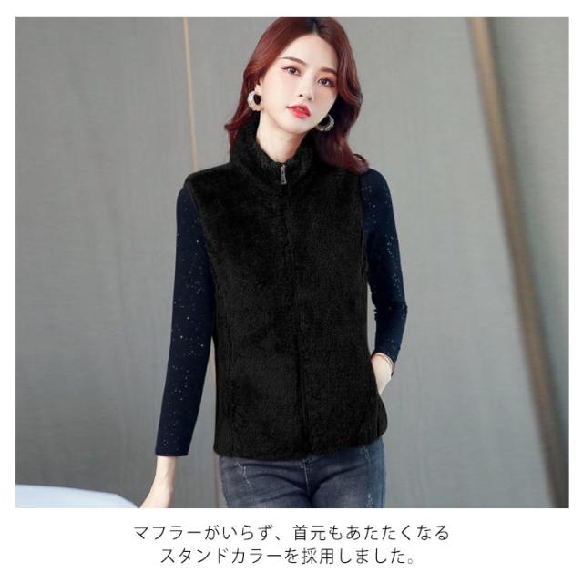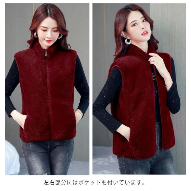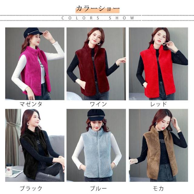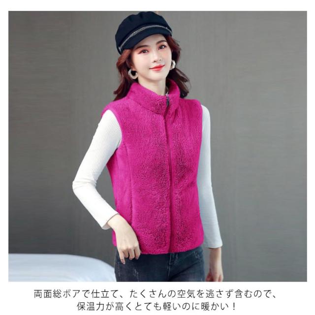 全6色×6サイズ!両面フリースボア ジャケット ベスト ボアベスト フリースジャケット ノースリーブ ボアジャケット 立ち襟 ボア ふわふわ もこもこ 秋冬 シンプル 無地 レディース