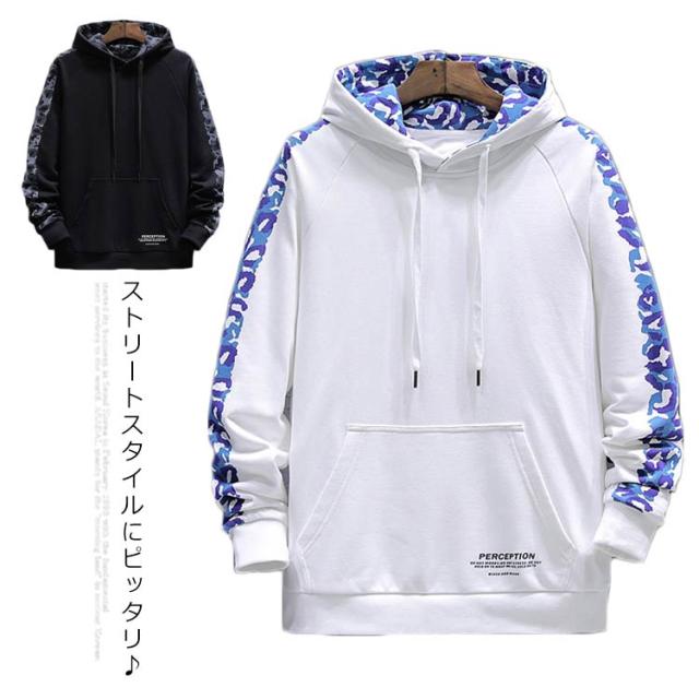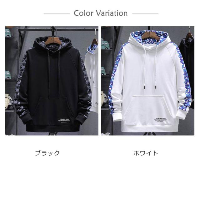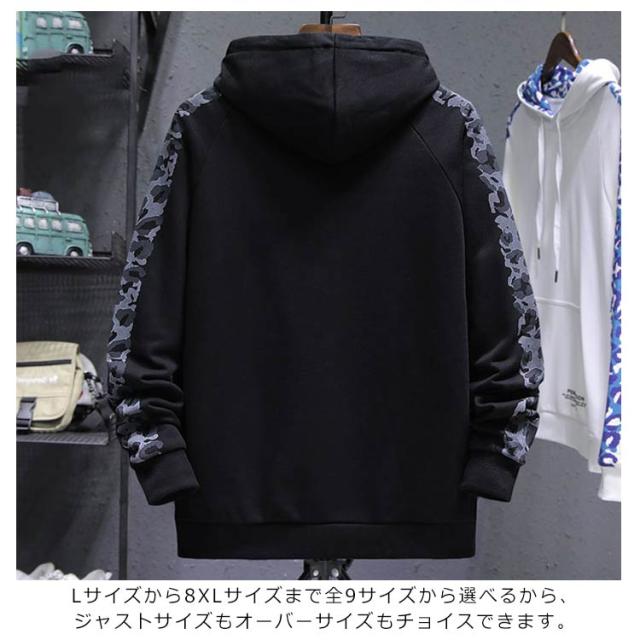 L-8XL パーカー プルオーバー フード付き メンズ 迷彩柄 切り替え 長袖 スウェットパーカー 大きいサイズ ラグランスリーブ トップス 春服 秋服