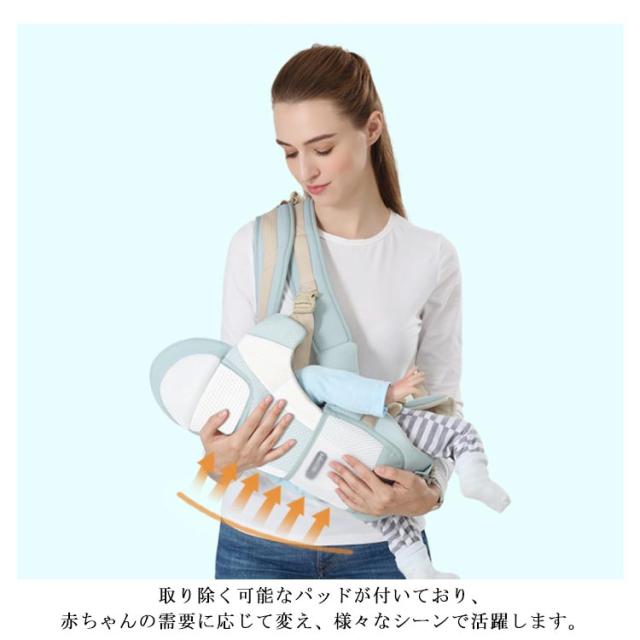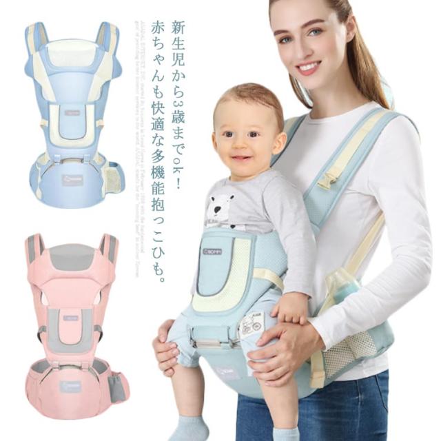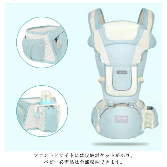 抱っこひも 赤ちゃん ベビー抱っこ紐 ベビーキャリー ヒップシート付き ポータブル着脱式シート 綿 対面抱き 前向き抱っこ ウエストキャリー分離可 収納ポケット付き 腰部ベンチストラップ 調節可 ベビー用品 出産祝い 新生児