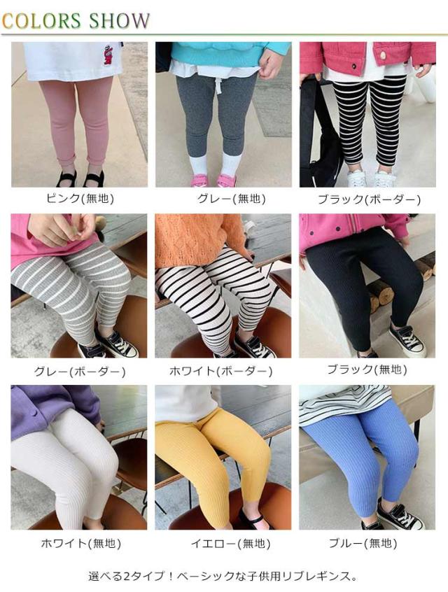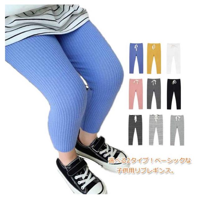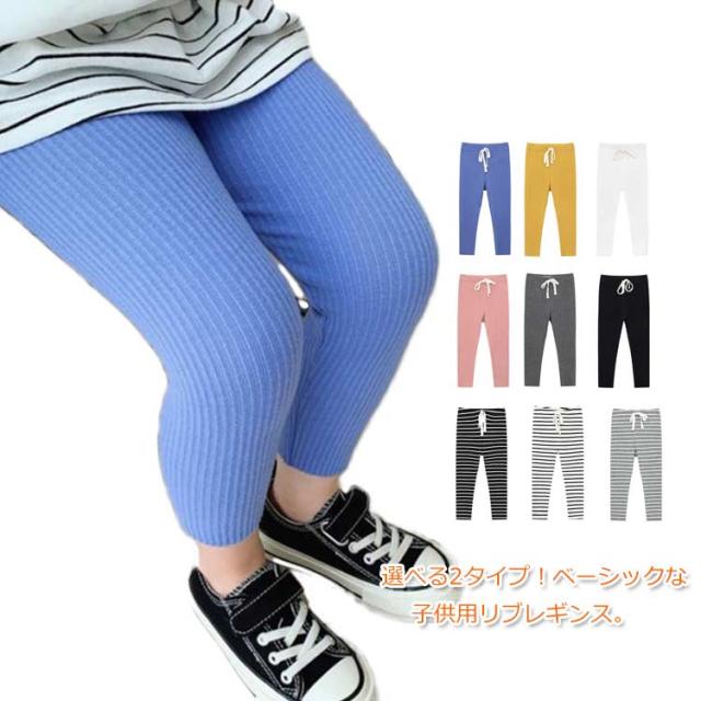 送料無料 リブレギンス キッズ レギンス 女の子 スパッツ ベビー パンツ ボトムス 子供服 ストレッチ 伸縮性 ガールズ 無地 ボーダー シンプル おしゃれ 春秋 春 秋 通園 通学 保育園 幼稚園