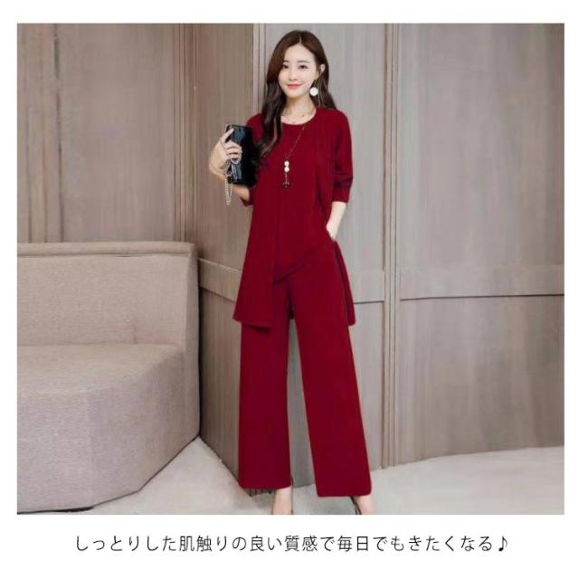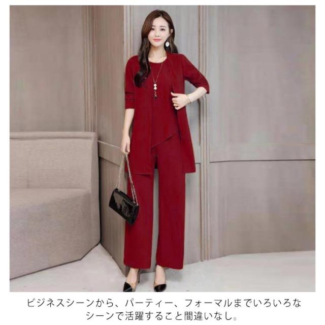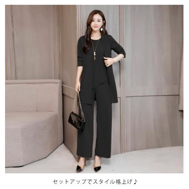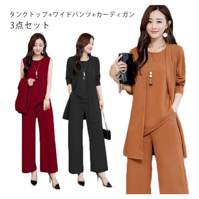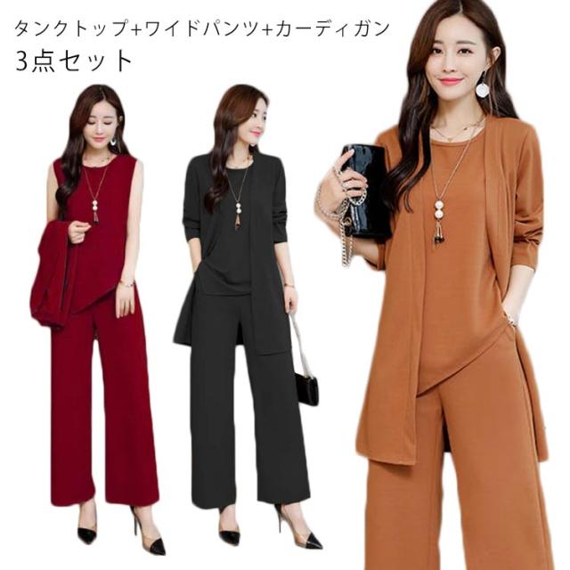 レディース セットアップ タンクトップ+ワイドパンツ+カーディガン 3点セット パンツスーツ Uネック タンクトップ ワイドパンツ イージーパンツ ロングパンツ エレガント フェミニン フォーマル 通勤 ビジネス オフィス 入学式 卒業式 お宮参り