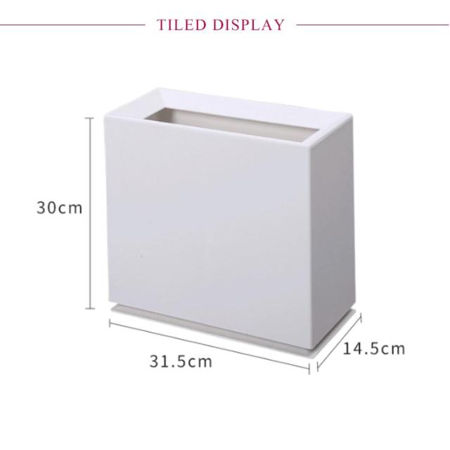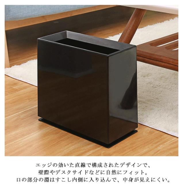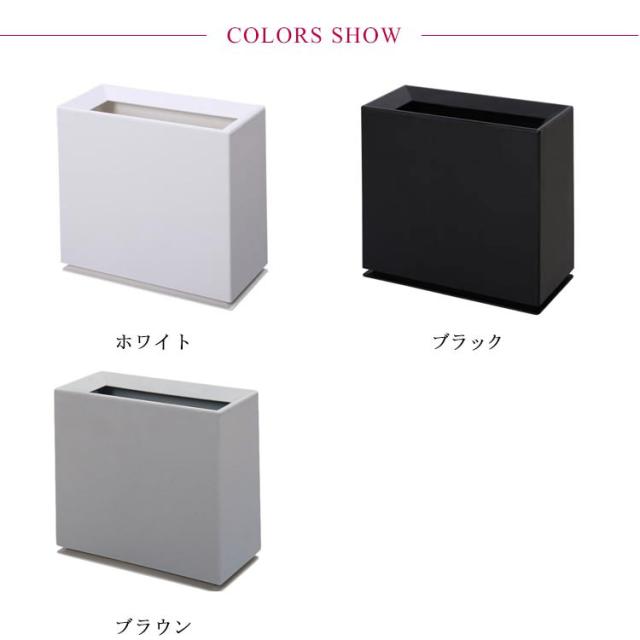 | シンプルおしゃれなスリムなスクエア型ゴミ箱! エッジの効いた直線で構成されたデザインで、壁際やデスクサイドなどに自然にフィット。口の部分の淵はすこし内側に入り込んで、中身が見えにくい。 移動したい時は片手で持ち上げられるよう内側に持ち手があるのも嬉しいポイントです。 生活感が出てしまうビニール袋をカバーで隠す二重構造で、どこに置いてもシックな佇まいでインテリアに馴染みます。 分別したいときあ本体にあるスリットにビニール袋を掛けて、2分割して使えます。 置く場所を選ばない、で落ち着いたカラーでどんなインテリアにもマッチします。 | |