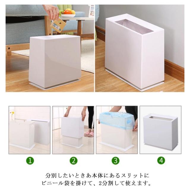置く場所選ばない!ゴミ箱 おしゃれ ごみ箱 ダストボックス スリム 北欧 スクエア ごみばこ 2分別 リビング キッチン バスルーム シンプル ゴミ袋 袋 隠す 見えない インテリア 雑貨 可愛い