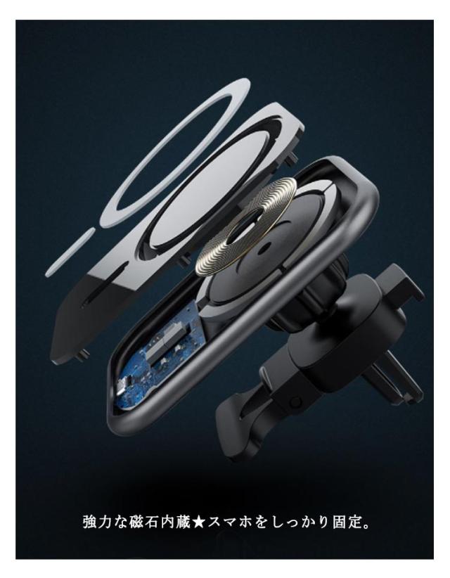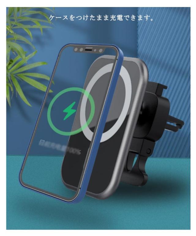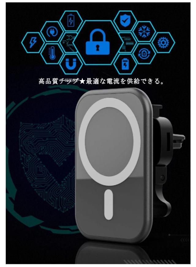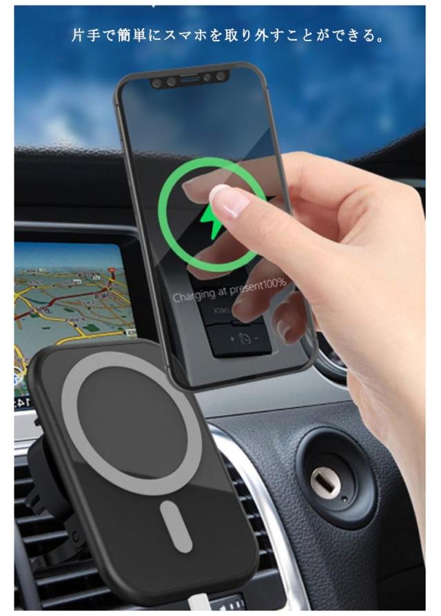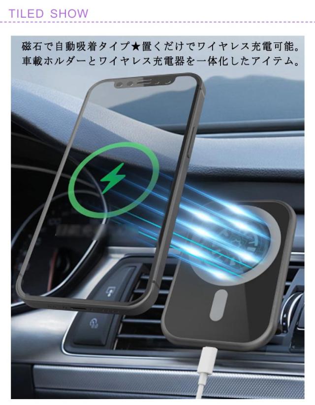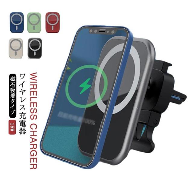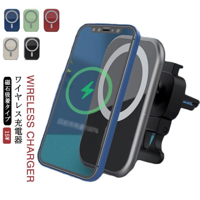 15W 急速充電 ワイヤレス充電器 iPhone12 Qi充電対応 マグネット 車載用 磁石吸着 車載ホルダー 車載 急速 Qi 充電器 スマホスタンド スマホホルダー 充電ホルダー エアコン吹き出し口用 クリップ式 過充電保護 車載 カーチャージャー カー用品