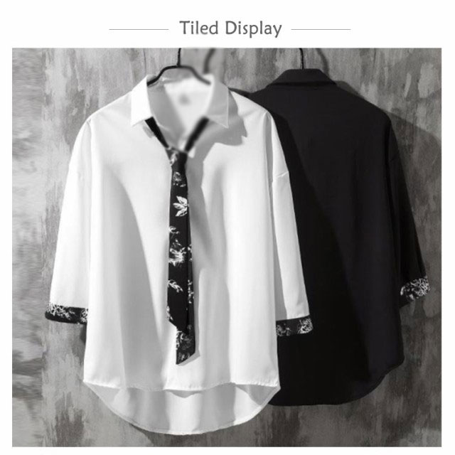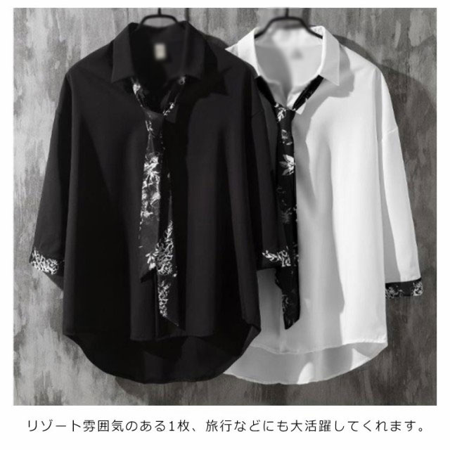 送料無料 プルオーバー シャツ メンズ 長袖 トップス リボンネクタイ付き カジュアルシャツ 春夏 新作 韓国ファッション おしゃれ ストライプ 花柄 原宿系 モダン