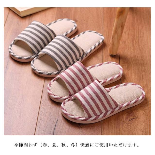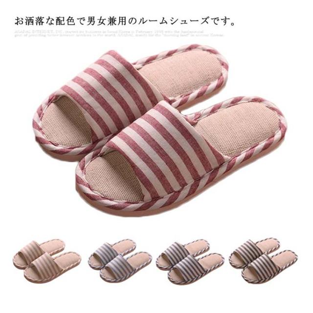 ルームシューズ スリッパ 室内用 メンズ レディース 来客用 ボーダー柄 通気性 オールシーズン 滑り止め 軽量 静音 室内履き お洒落 男女兼用 履きやすい 家族用