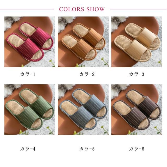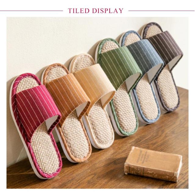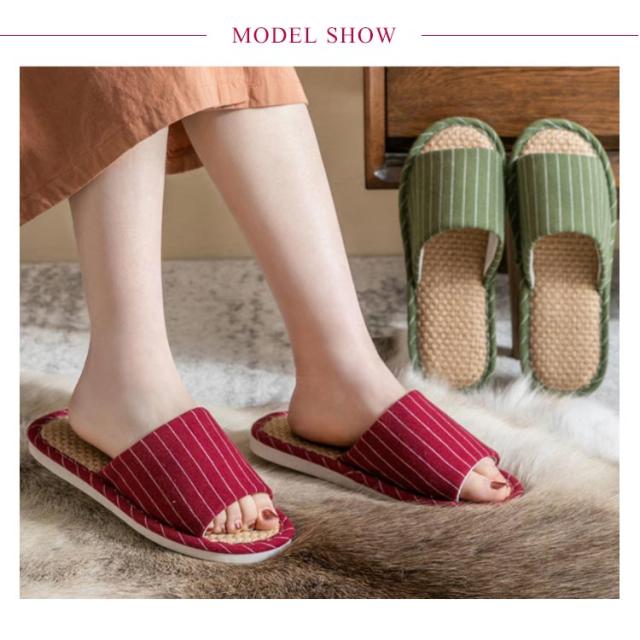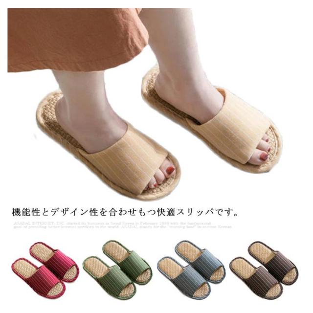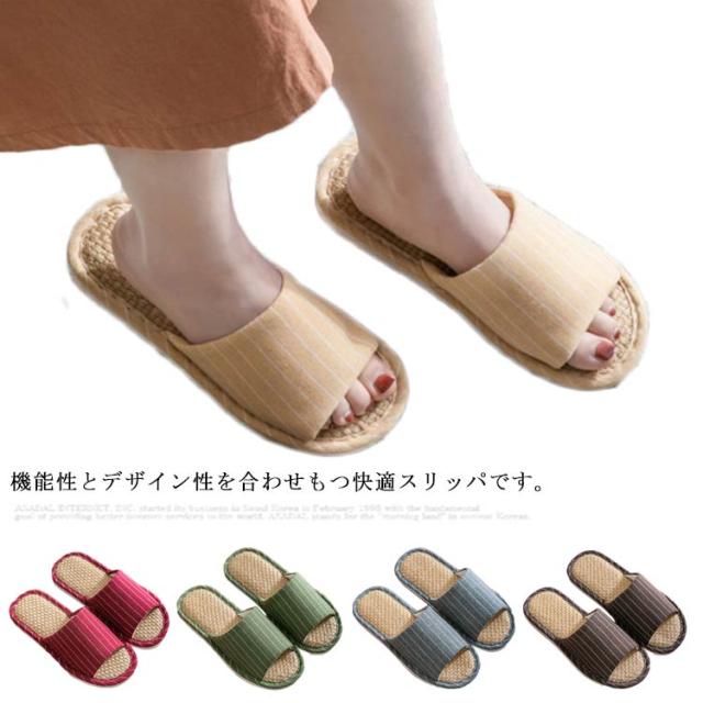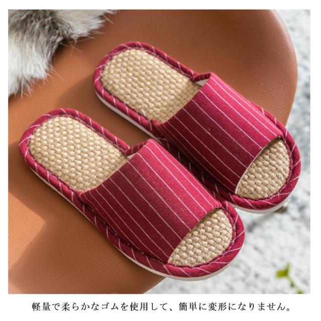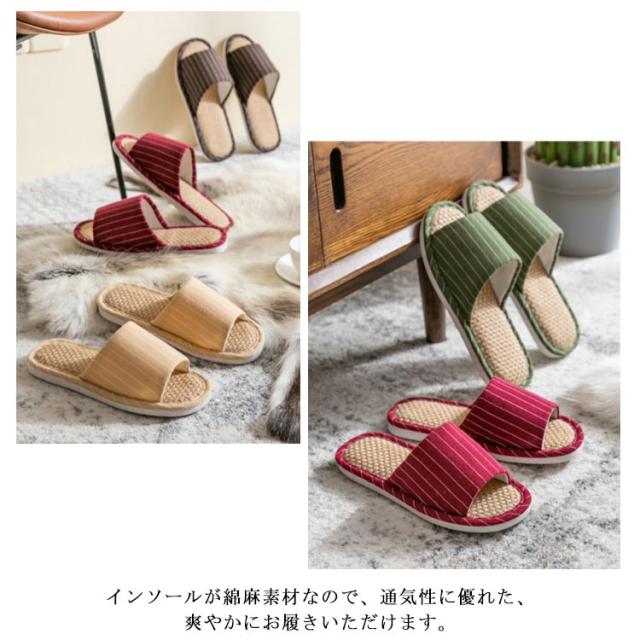 ルームシューズ スリッパ 室内用 メンズ レディース 来客用 ストライプ 通気性 綿麻 春夏秋 滑り止め 軽量 静音 室内履き お洒落 男女兼用 履きやすい 家族用
