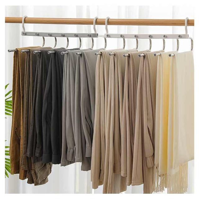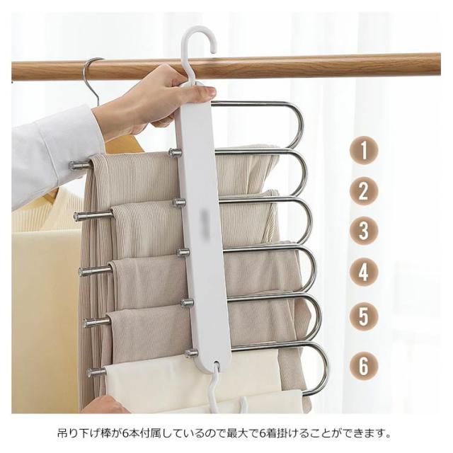 スラックスハンガー 6連 多機能ハンガー ズボンハンガー ズボン収納ハンガー 滑り止め マルチハンガー 皺防止 クロゼット収納 省スペース 洗濯 物干し 衣類収納 スカーフ収納 旅行 便利グッズ 便利
