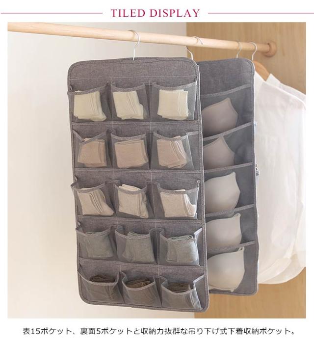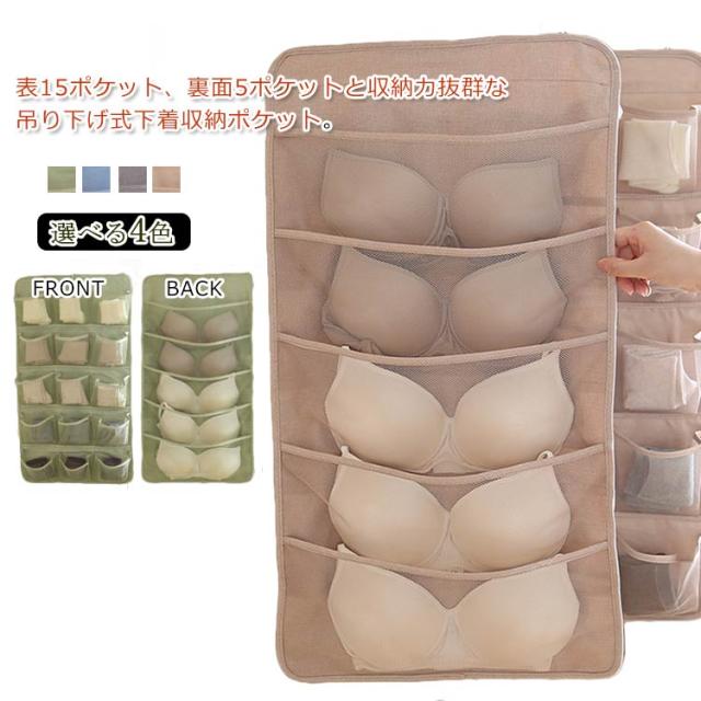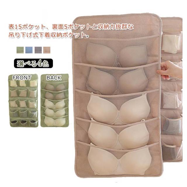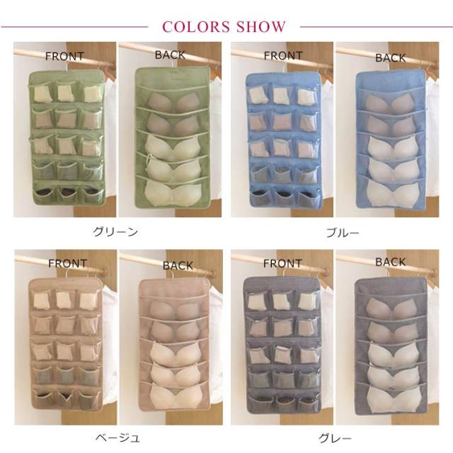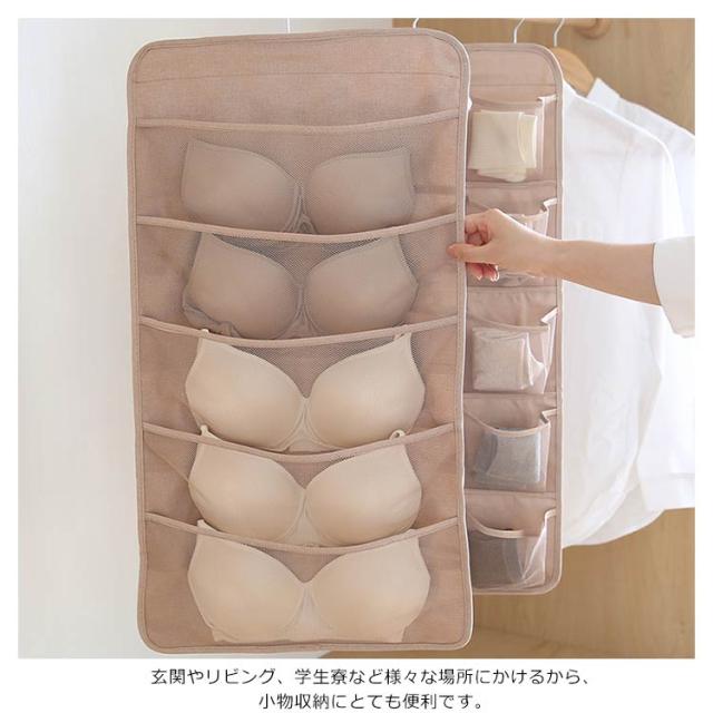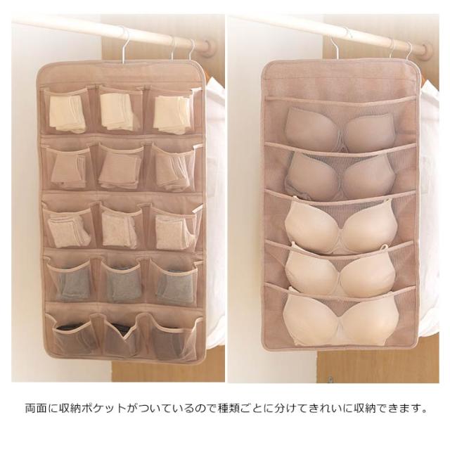 送料無料 吊り下げ 収納 両面収納 収納ポケット 仕切り ポケット 下着収納ケース 下着 ブラ ショーツ 靴下 収納 小物整理 壁掛け ハンガー おしゃれ クローゼット 隙間収納 薄型 ハンガー 大容量 シンプル おしゃれ