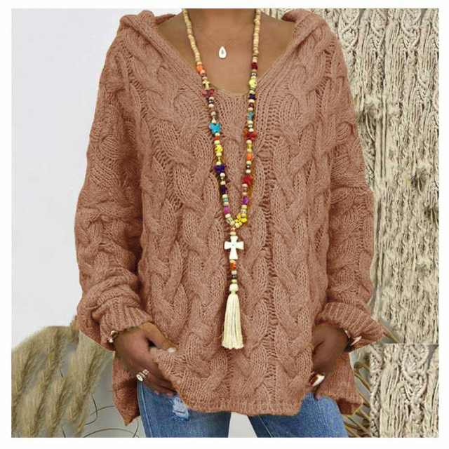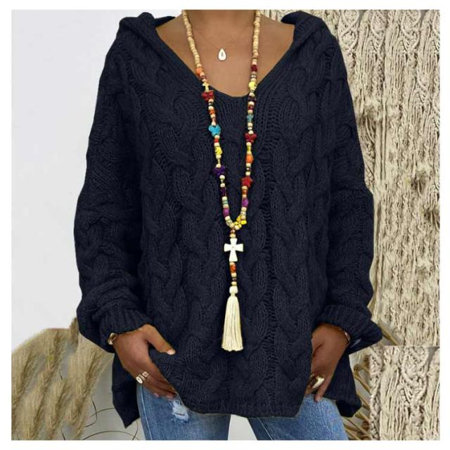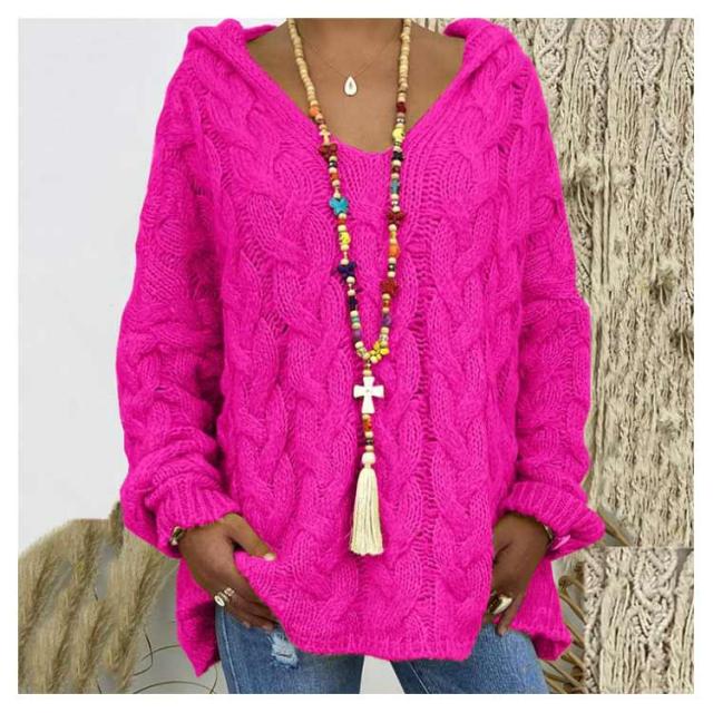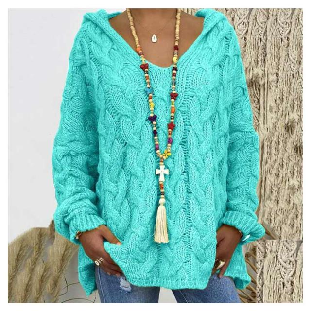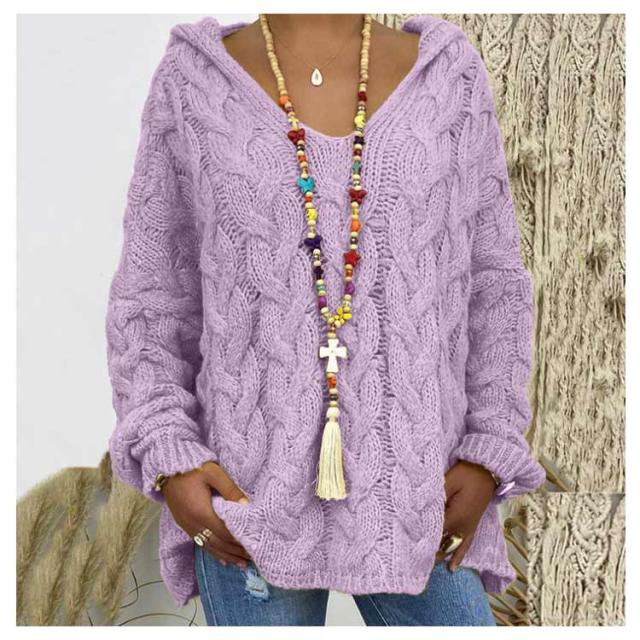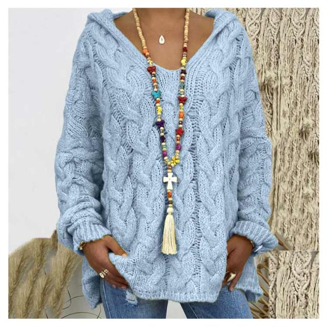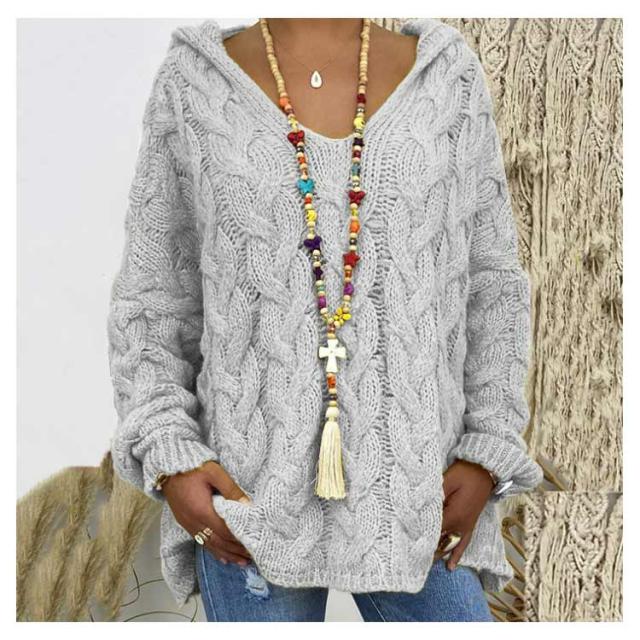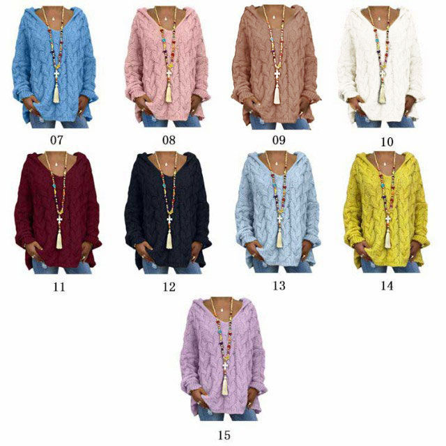 秋冬新色追加全15色!ケーブル編みニットトップス プルオーバーニット ざっくりニット レディース ニット セーター トップス フード付き ゆったり 大きサイズ 秋 冬 カジュアル ケーブル