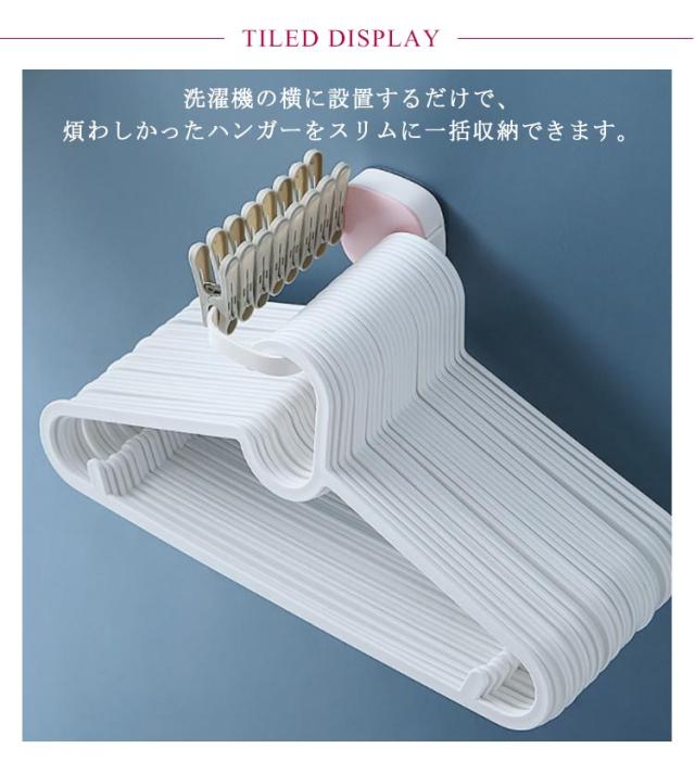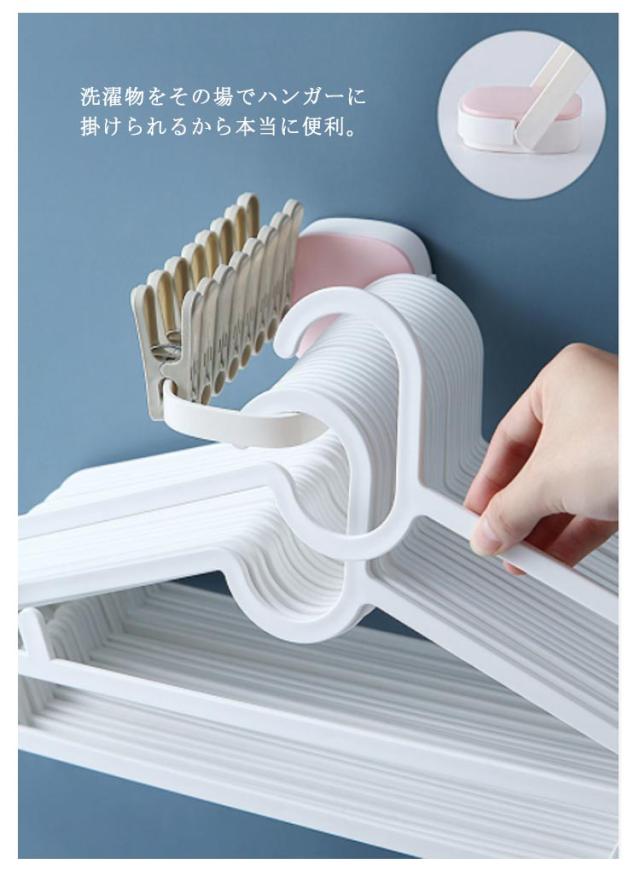 | かさばる洗濯ハンガーをすっきり収納できるフック。 洗濯機の横に設置するだけで、煩わしかったハンガーをスリムに一括収納できます。 洗濯物をその場でハンガーに掛けられるから本当に便利。 洗濯ハサミもキレイにまとめて収納できます。 使わない時はコンパクトに◎ はがせる粘着テープ式なので、 壁などいろいろなところに設置できます。 | |