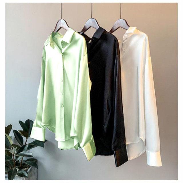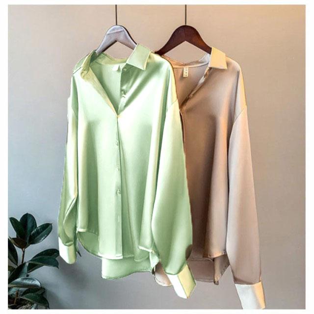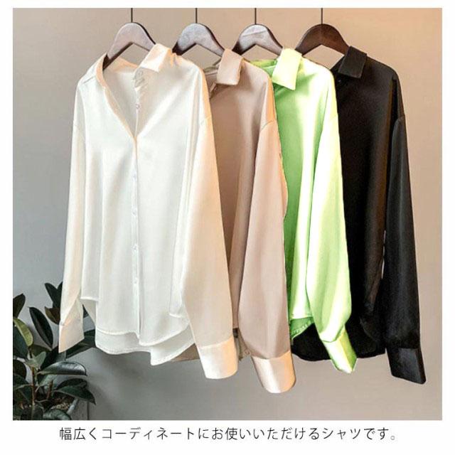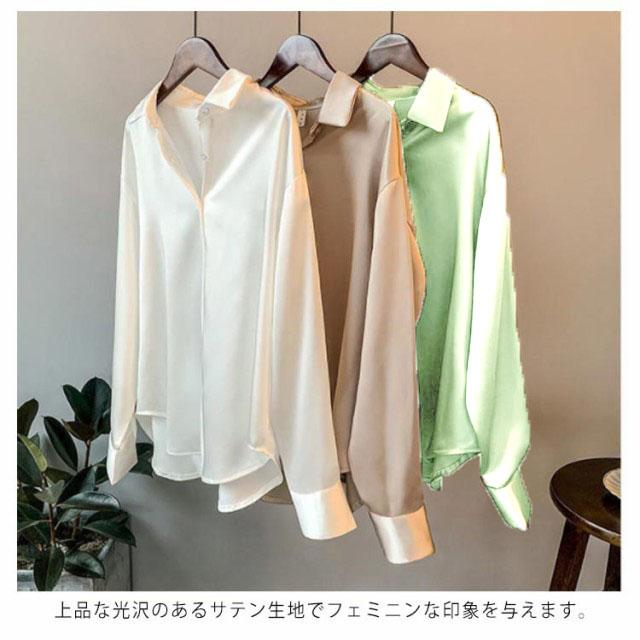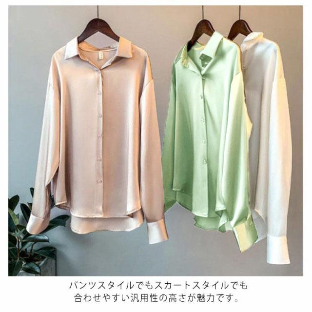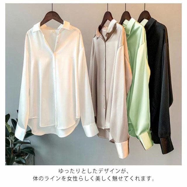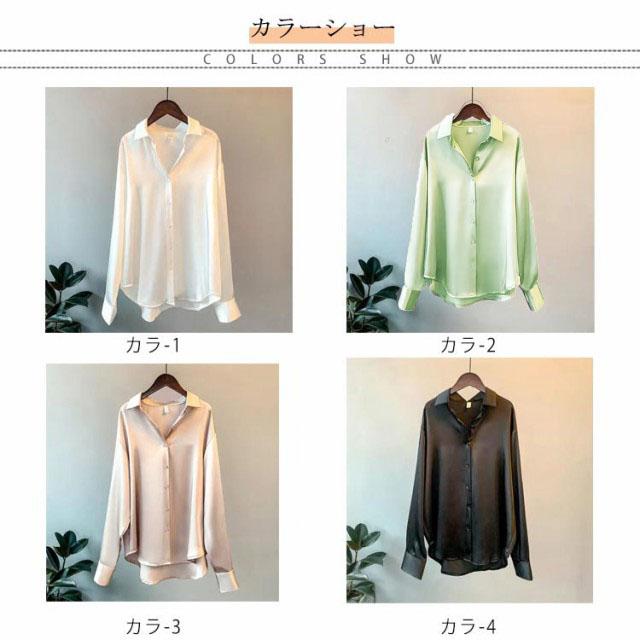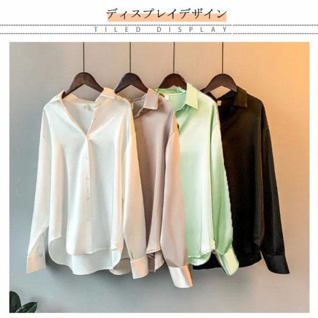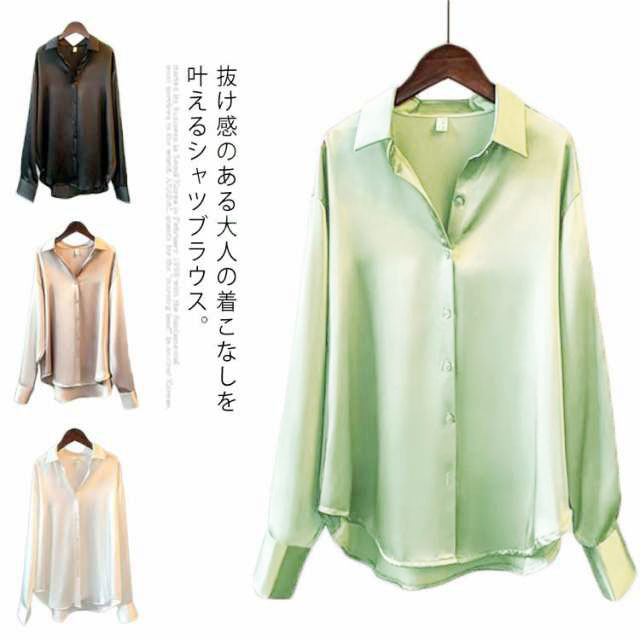 ブラウス レディース 春服 サテン 無地 シャツブラウス 光沢 長袖 きれいめ トップス 通勤 OL 着痩せ ゆったり 大きいサイズ お洒落