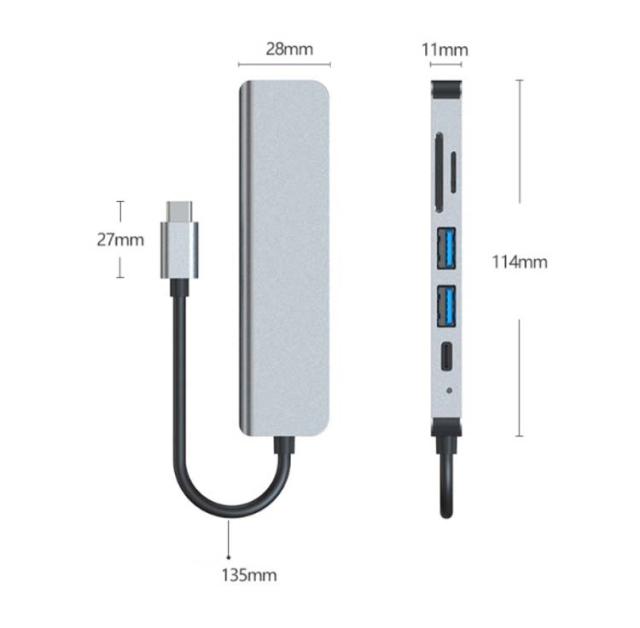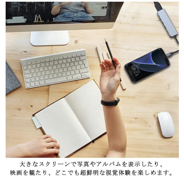 | 【商品名】Type-Cハブ 【サイズ】F 【素材】 アルミ 合金 そのほか 【特徴】 PD急速充電:87W 入力:Type-C 出力:PD充電ポート×1、HDMIポート×1、TFカードリーダー×1、SDカードリーダー×1、USB3.0ポート×1、USB2.0ポート×1 HDMI解像度:4K/30Hz ケーブル1本で周辺機器をまとめて接続!ケーブルを頻繁に抜き差しする必要がなく、より快適な作業環境をつくります。 ※メモリーカードは付属しておりません。 | |