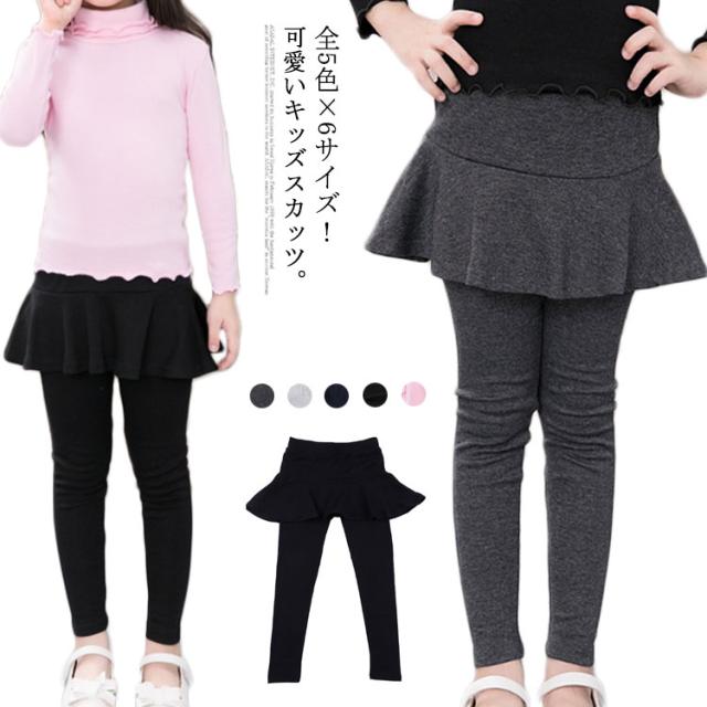 送料無料 スカッツ キッズ スカート付き ボトムス レギンス ロング丈 女の子 スカート スパンツ 子供服 レギンス付きスカート ジュニア ミニスカート 通年用 伸縮 のびのび シンプル 無地 春秋 春 秋 韓国