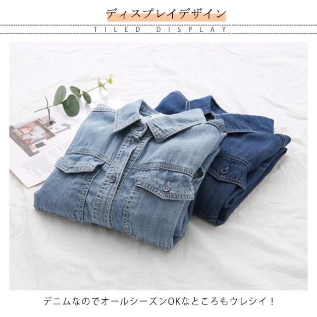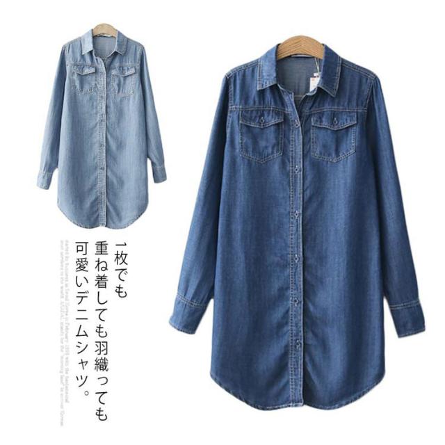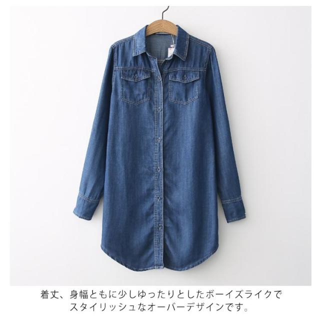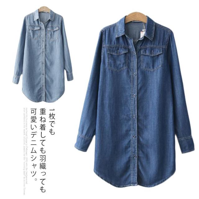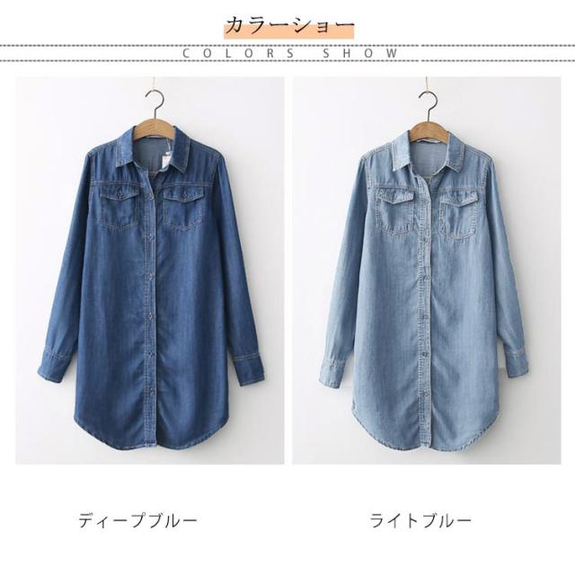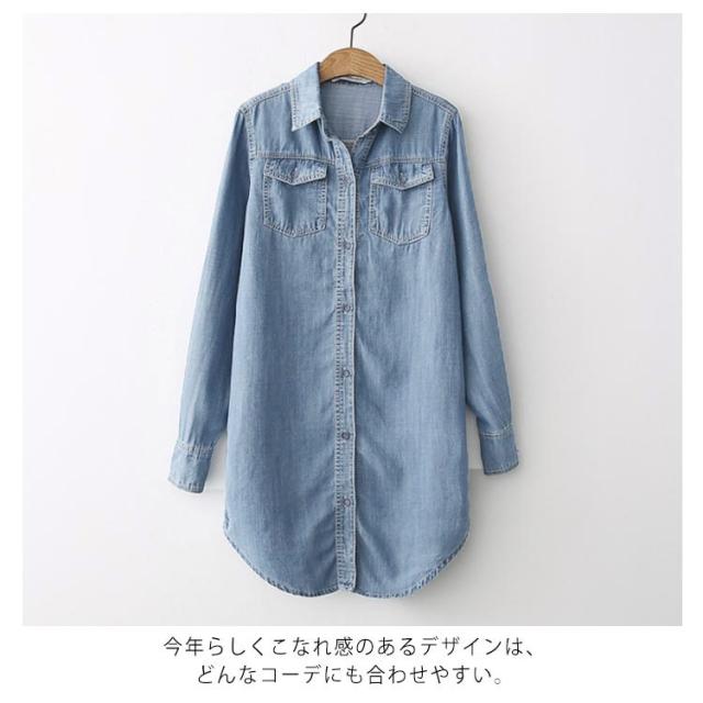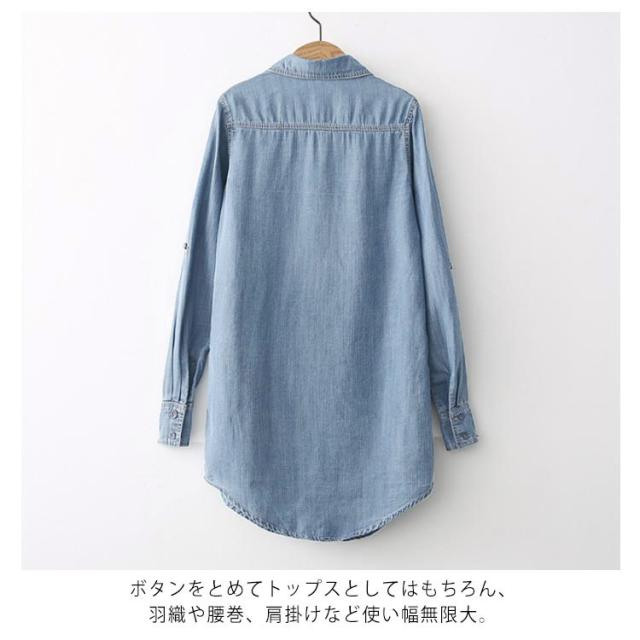 送料無料 デニムダンガリーシャツ トップス デニム レディース 綿 デニムシャツ シャツ ロングシャツ チュニック ロング ダンガリーシャツ 春 秋 袖ボタン付き
