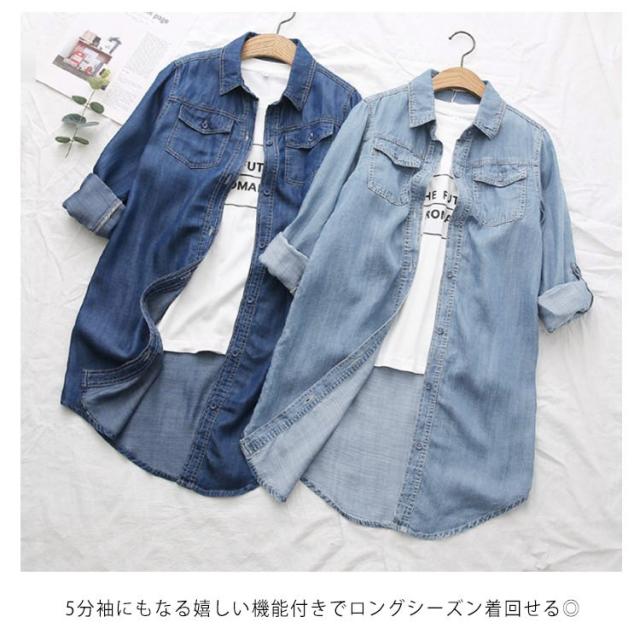 | 1枚でも重ね着しても羽織っても可愛いデニムシャツ。 デニムなのでオールシーズンOKなところもウレシイ! 5分袖にもなる嬉しい機能付きでロングシーズン着回せる◎ 着丈、身幅ともに少しゆったりとしたボーイズライクでスタイリッシュなオーバーデザインです。 今年らしくこなれ感のあるデザインは、どんなコーデにも合わせやすい。 ボタンをとめてトップスとしてはもちろん、羽織や腰巻、肩掛けなど使い幅無限大。 | |