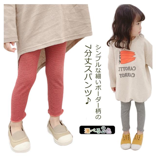 送料無料 スパッツ キッズ レギンス 子供服 ボトムス ベビー 7分丈 女の子 ボーダー シンプル 春夏