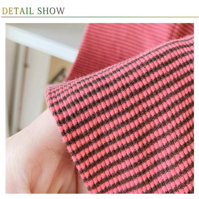 | シンプルな細いボーダー柄の7分丈スパンツ♪ ウエストはゴム仕様でストレスフリーに着用できます。 裾口可愛いメロウ仕様で仕上がっております。 お出かけはもちろん、普段着としてもオススメ。 | |