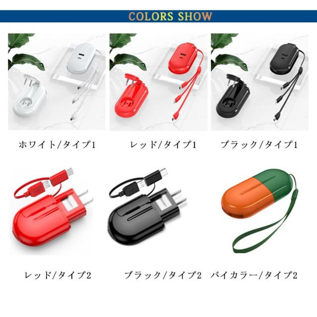 | ケーブルがすっきり収納できるACアダプター。 同時に5台/2台充電できますのでとても便利。 iPhone、typeC、マイクロUSBとUSB充電コネクタを持っていて、iPhone12 Pro/XS/XS/Androidなど様々なスマホや、タブレット、イヤホン、デジタルカメラをフルスピードで充電可能です。 巻き取り式ケーブルと折畳式プラグデザインなので、収納しやすい持ち運び超便利。 AC入力 100-240V の電圧に対応できるから、旅行や出張先など海外でも活躍。 過電圧、過電流、加熱を防ぐ各種保護回路搭載で、安全性バツグン。 | |