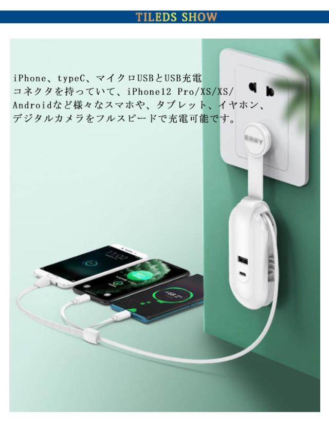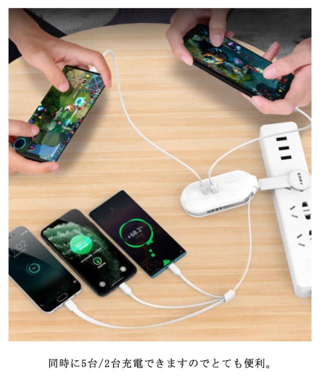 送料無料 急速充電器 コンパクト ACアダプター iPhone/Android/Type-C 充電ケーブル 収納 3in1充電器 5台同時充電 小型 巻き取り式 折畳式プラグ 伸縮 収納便利