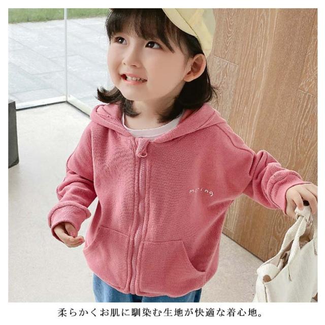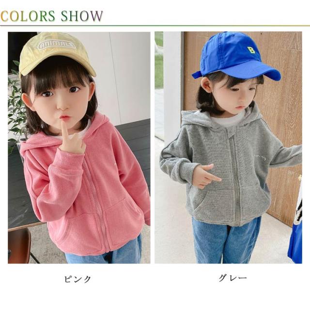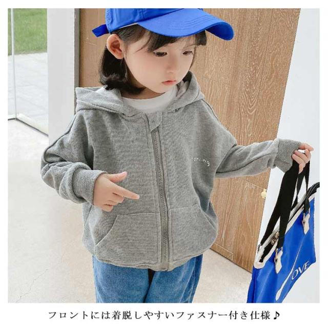 送料無料 パーカー ベビー服 パーカ トップス 女の子 トレーナー 子供服 男の子 アウター キッズ スウェット 長袖 ドルマンスリーブ ジップアップ フード付き ポケット付き ファスナーガード付き おしゃれ リブ 無地 春秋冬 韓国